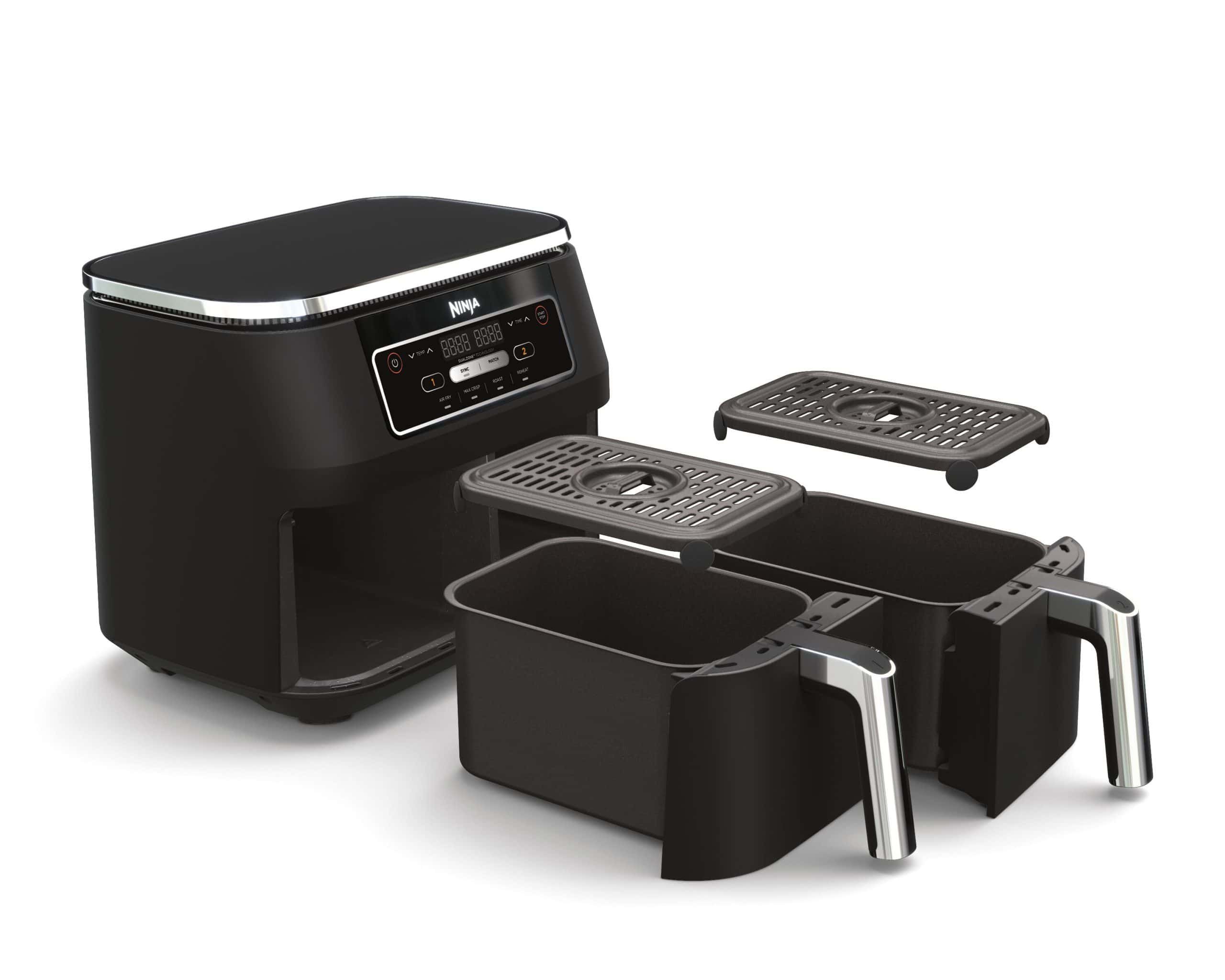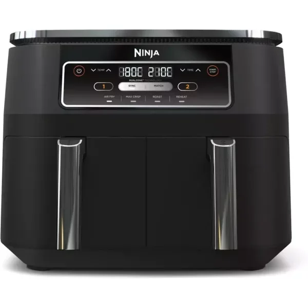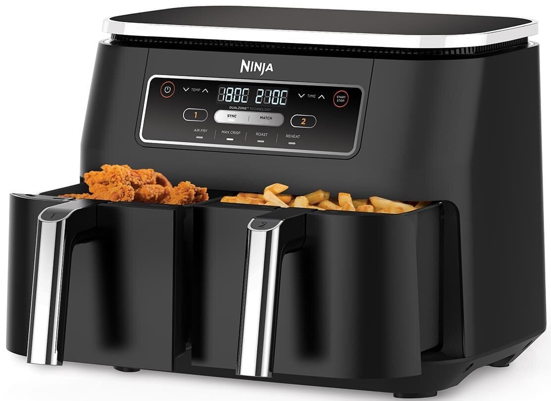 Многофункциональный аэрогриль с двумя независимыми зонами готовки (Dual Zone), объёмом 7.6 л и мощностью 2400 Вт. Позволяет готовить два разных блюда одновременно, задавая для каждой зоны свои настройки температуры и времени. Подходит для жарки горячим воздухом, запекания, разогрева и получения хрустящей корочки при минимальном количестве масла.