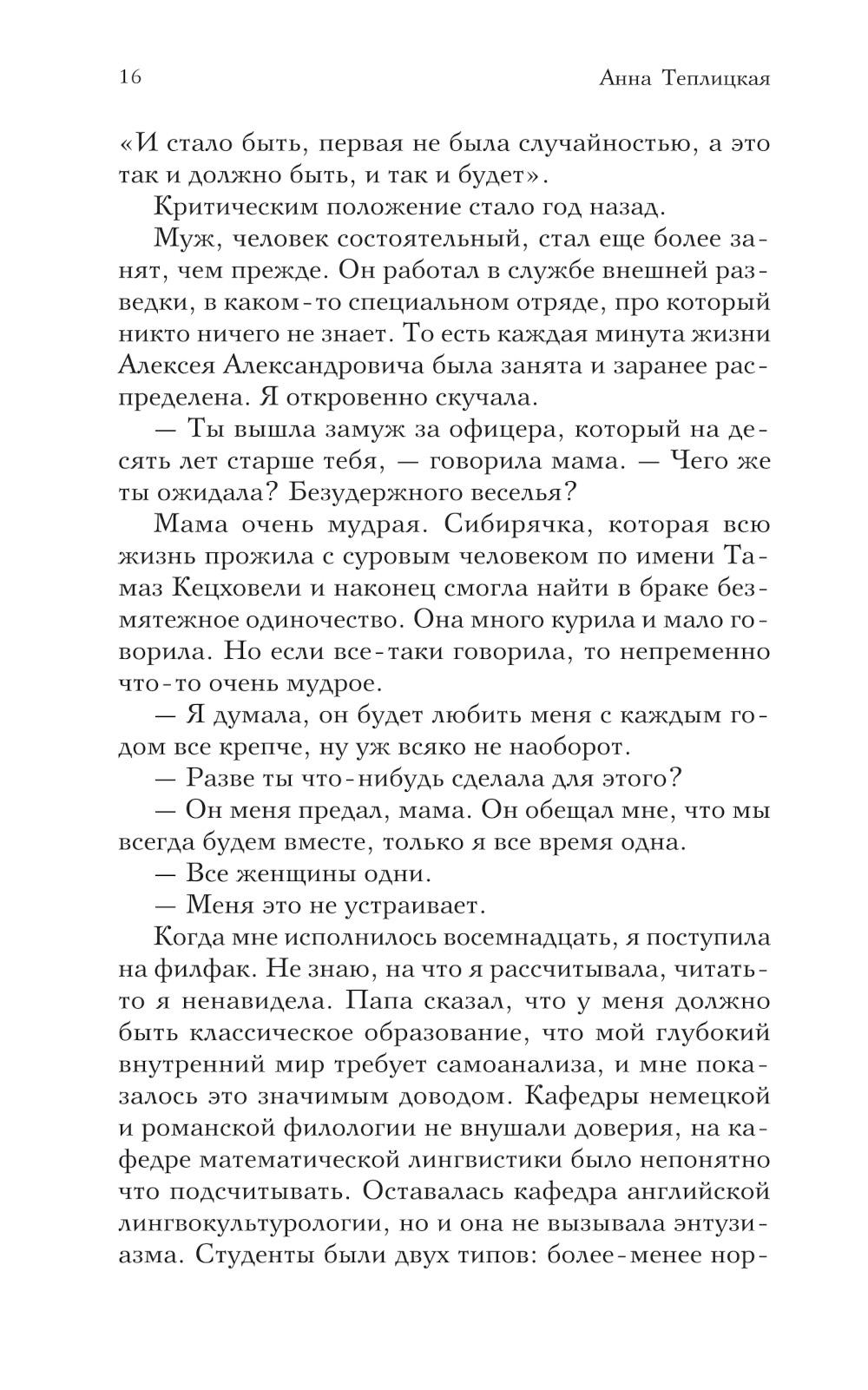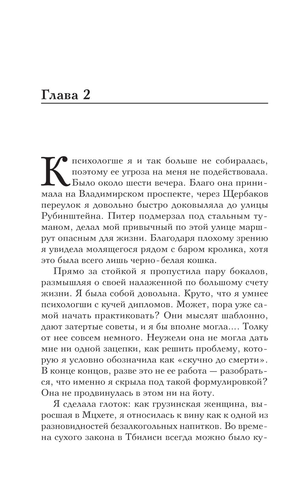 Нино Кецховели живёт в роскошной квартире на Фонтанке: муж-полковник, двое сыновей, любовник и хроническая усталость от жизни. В поисках выхода она приходит к гипнотерапевту, но путешествия в подсознание таят опасность. История Нино - это и драма любви, и психологический эксперимент, и путешествие по мифологическому Петербургу, где реальность и воображение сплетаются до неразличимости. Грузия, Россия, три десятилетия жизни и один вопрос: можно ли вырваться из круга собственных воспоминаний?| Издательство | Эксмо |