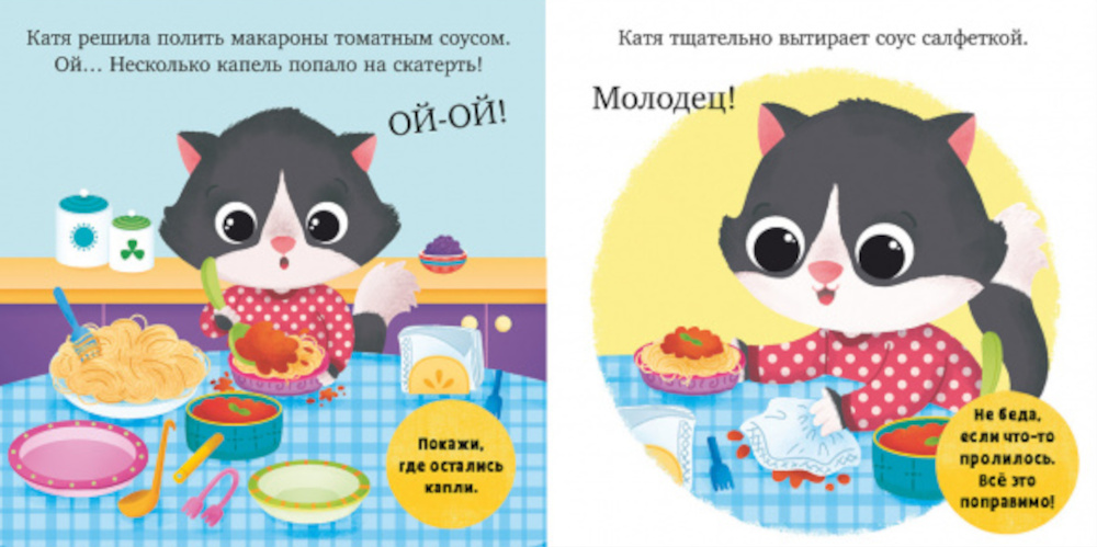 Как научить малыша есть самостоятельно? В этом поможет котя по имени Катя. Она расскажет, как правильно пить из чашки, как пользоваться вилкой и что делать, если что-то разлилось. Эта история с советами на каждой страничке станет незаменимой для детей и взрослых и поможет малышу научиться есть самостоятельно!| Издательство | Клевер-Медиа-Групп |