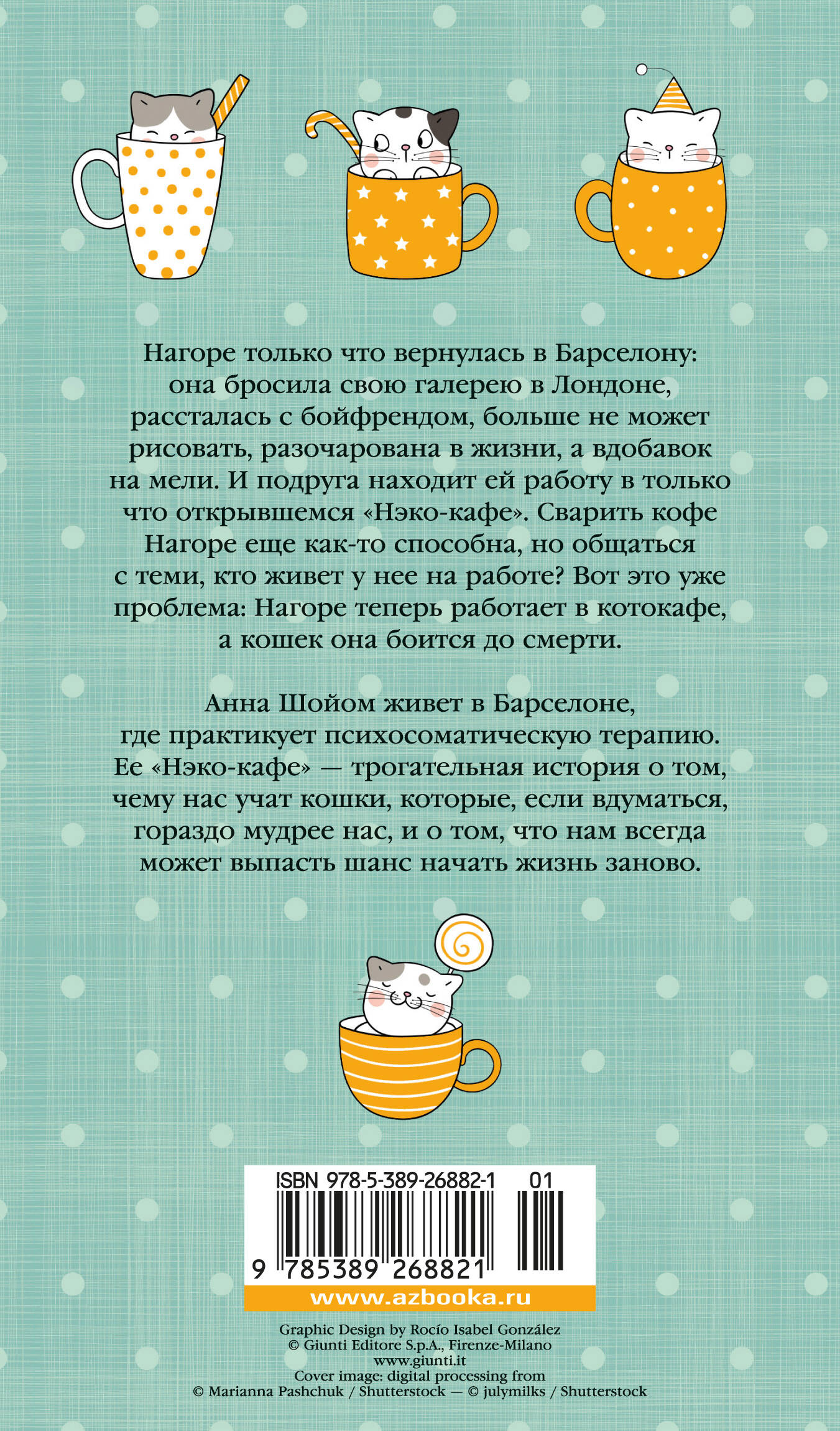 Нагоре только что вернулась из Лондона, где бросила свою галерею и рассталась с бойфрендом. Она больше не может рисовать и окончательно разочаровалась в жизни. У нее нет денег даже на оплату квартиры, а у родителей просить неловко - ей все-таки почти сорок лет. И подруга находит ей работу в барселонском "Нэко-кафе", которое только что открыла японка Юми. Сварить кофе Нагоре еще как-то способна, но сосуществовать с обитателями нового места работы? Вот это уже проблема. Потому что теперь Нагоре работает в котокафе, а кошек она с детства боится до смерти. Анна Шойом, уроженка Будапешта, живет в Барселоне, где практикует психосоматическую терапию. С кошками она дружит всю жизнь и прекрасно их понимает. "Нэко-кафе" - ее первая чисто художественная книга, прозрачная и трогательная история о том, чему мы можем научиться у кошек, которые, если вдуматься, гораздо мудрее нас, и о том, что нам всегда может выпасть шанс начать жизнь заново. Впервые на русском!