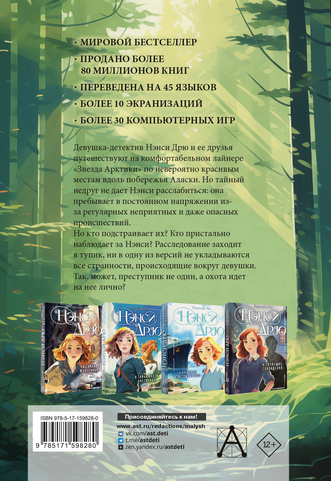 Девушка-детектив Нэнси Дрю и ее друзья путешествуют на комфортабельном лайнере «Звезда Арктики» по невероятно красивым местам вдоль побережья Аляски. Но тайный недруг не дает Нэнси расслабиться: она пребывает в постоянном напряжении из-за регулярных неприятных и даже опасных происшествий. Но кто подстраивает их? Кто пристально наблюдает за Нэнси? Расследование заходит в тупик, ни в одну из версий не укладываются все странности, происходящие вокруг девушки. Так, может, преступник не один, а охота идет на нее лично?| Издательство | Издательство "АСТ" |