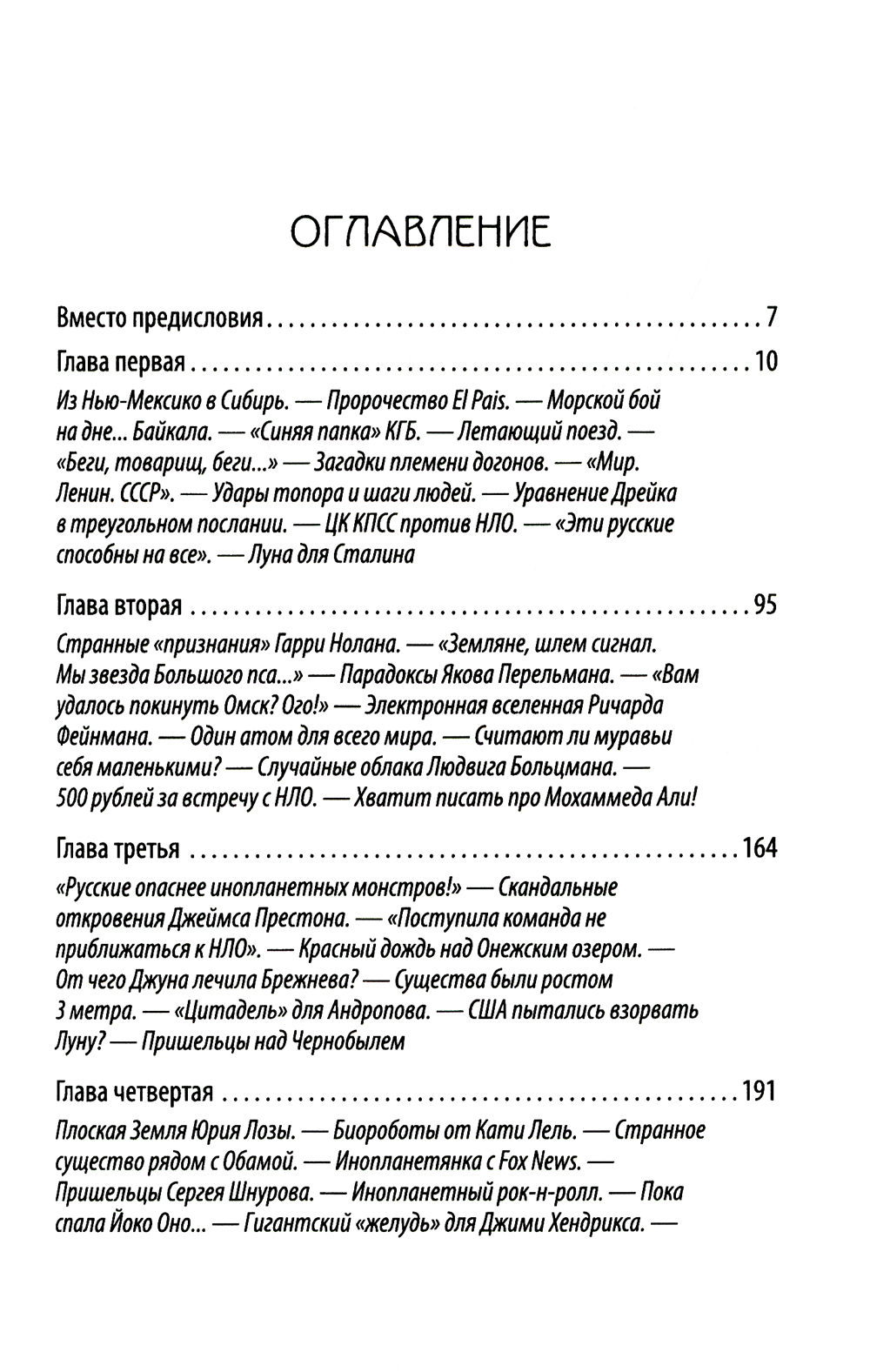 Первое письменное упоминание об НЛО сделано в Египте во времена правления фараона Рамзеса II (1279-1213 годы до н.э.) В летописи описаны огненные шары, который правитель увидел в небе. Начиная примерно с середины 1980-х годов, во всем мире издано немало книг и про НЛО и инопланетян. Но в последнее десятилетие интерес к этой теме заметно ослаб. Недавно к ним вспыхнул новый интерес, который продолжается и сейчас. Природа НЛО до сих пор не раскрыта. По мнению автора, раскрывать ее не выгодно уже потому, что она может оказаться вполне земным явлением. А это значит только одно: за нами просто кто-то присматривает. Причем здесь, на нашей планете, а не из далекого космоса.| Издательство | Родина |