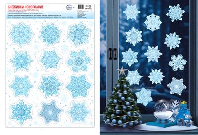 Аннотация: НМТ1-15344 Набор новогодних наклеек. Новогодние снежинки 4+4, видны с обеих сторон А4+