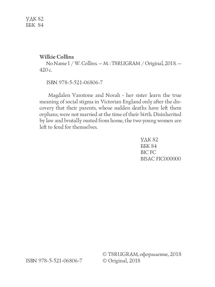 Magdalen Vanstone and Norah - her sister learn the true meaning of social stigma in Victorian England only after the discovery that their parents, whose sudden deaths have left them orphans, were not married at the time of their birth. Disinherited by law and brutally ousted from home, the two young women are left to fend for themselves.| Издательство | Т8 RUGRAM |