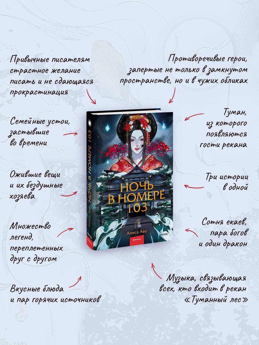 Япония. Маленький отель на северном склоне гор. Трудолюбивая семья, владеющая им на протяжении сорока шести поколений. Гостей встречает юный Рюу, вкуснейшие блюда готовит его мать, за купальнями следит отец, экскурсии проводит младший брат. Царствует над всеми бабушка Хакусана - хозяйка отеля. В отеле есть и другие работники, обеспечивающие самый ненавязчивый сервис. Их видят хозяева, но гости - никогда. Сотрудников связывают семейные узы и договор с таинственной гостьей, которая прибывает в отель на три ночи в году и живет в номере 103. Начинающая писательница Мичи в поисках вдохновения приезжает в отель, и ее заселяют в сто третий номер. На следующее утро Мичи просыпается мертвой. Номер полон духов - верных слуг гостиницы. А в потайной комнате поет грустные песни еще одна пленница рекана.| Издательство | МАНН, ИВАНОВ И ФЕРБЕР ООО |