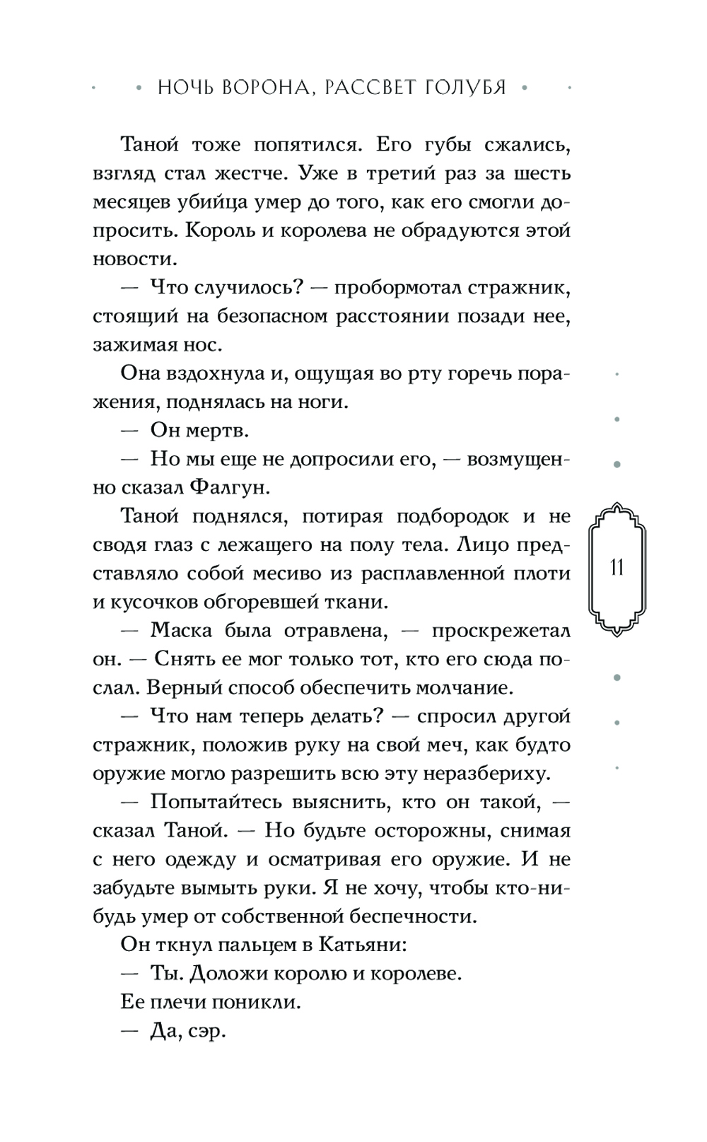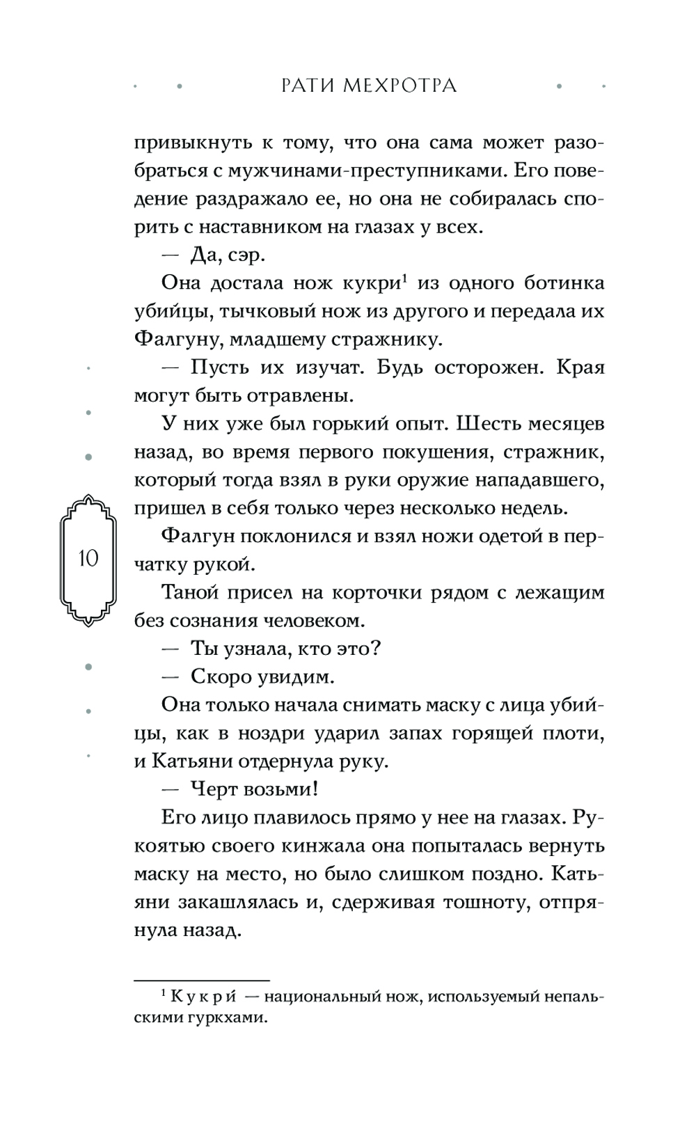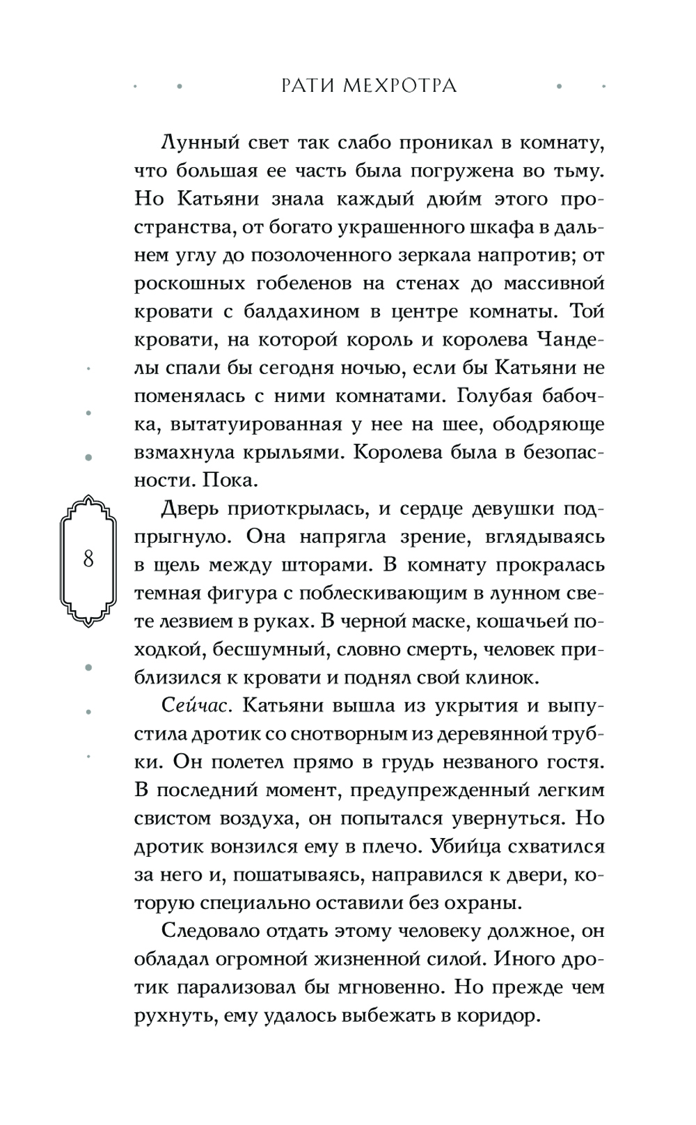 Средневековая Индия. В раннем детстве королева Чанлеллы спасла Катьяни, после чего на теле девушек магическим образом появились одинаковые татуировки. Связь душ позволила им чувствовать друг друга на расстоянии. Катьяни выросла в королевской семье и оправдала возложенные на нее надежды: стала лучшим стражником королевы и советником наследного принца. Долгие голы длится противостояние двух династий, и после очередного покушения принцы в сопровождении Катьяни вынуждены отправиться в гурукулу - школу посреди леса. Девушка должна не только защищать братьев, но и оттачивать навыки, чтобы стать опорой своему государству. Но Катьяни выпала роль пешки в смертельных играх двух королевств, кишащих демонами. И даже Дакш, привлекательный и скрытный юноша, не в силах помочь, когда девушку обвиняют в предательстве. В попытках избежать смертельной участи Катьяни отправляется на земли демонов яту и веталы. Теперь ей необходимо заглянуть в свое прошлое, чтобы спасти все, что дорого в настоящем.| Издательство | Эксмо |