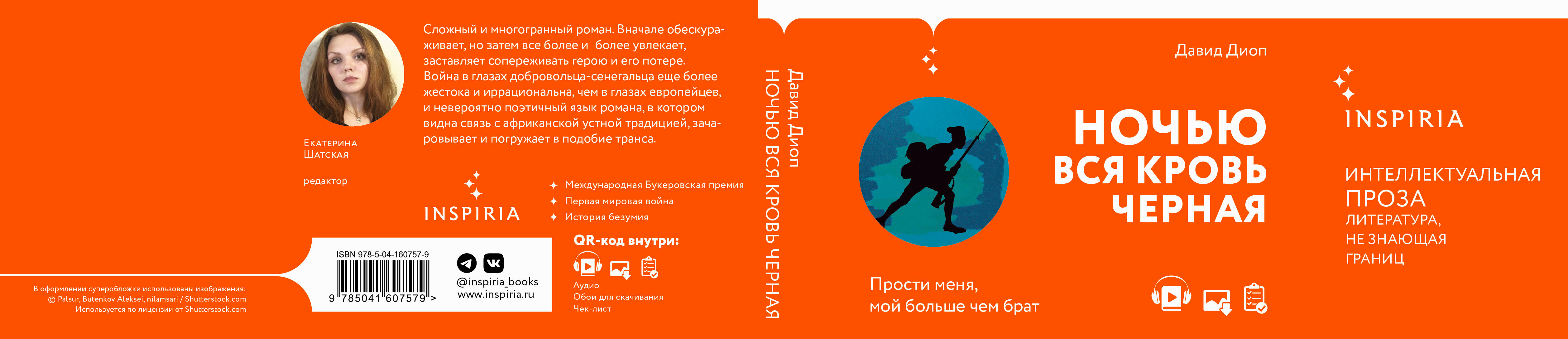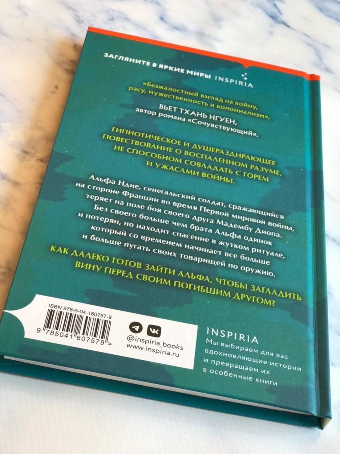 Роман - лауреат Международной Букеровской премии 2021 года, Европейской литературной премии и Гонкуровской премии лицеистов. Гипнотическое и душераздирающее повествование о воспаленном разуме, не способном совладать с горем и ужасами войны. Альфа Ндие, сенегальский солдат, сражающийся на стороне Франции во время Первой мировой войны, теряет на поле боя своего друга Мадембу Диопа. Без своего больше чем брата Альфа одинок и потерян, но находит спасение в жутком ритуале, который со временем начинает все больше и больше пугать своих товарищей по оружию. Как далеко готов зайти Альфа, чтобы загладить вину перед своим погибшим другом? Насквозь пронизанный пулями и языческой магией, «Ночью вся кровь черная» напоминает о забытой главе в истории Первой мировой войны. Смешав традиции устного повествования с сухим журналистским описанием ужасов жизни в окопах, Давид Диоп создал необычайную по силе и поражению историю о погружении человека в безумие.| Издательство | ООО "Издательство "Эксмо" |
