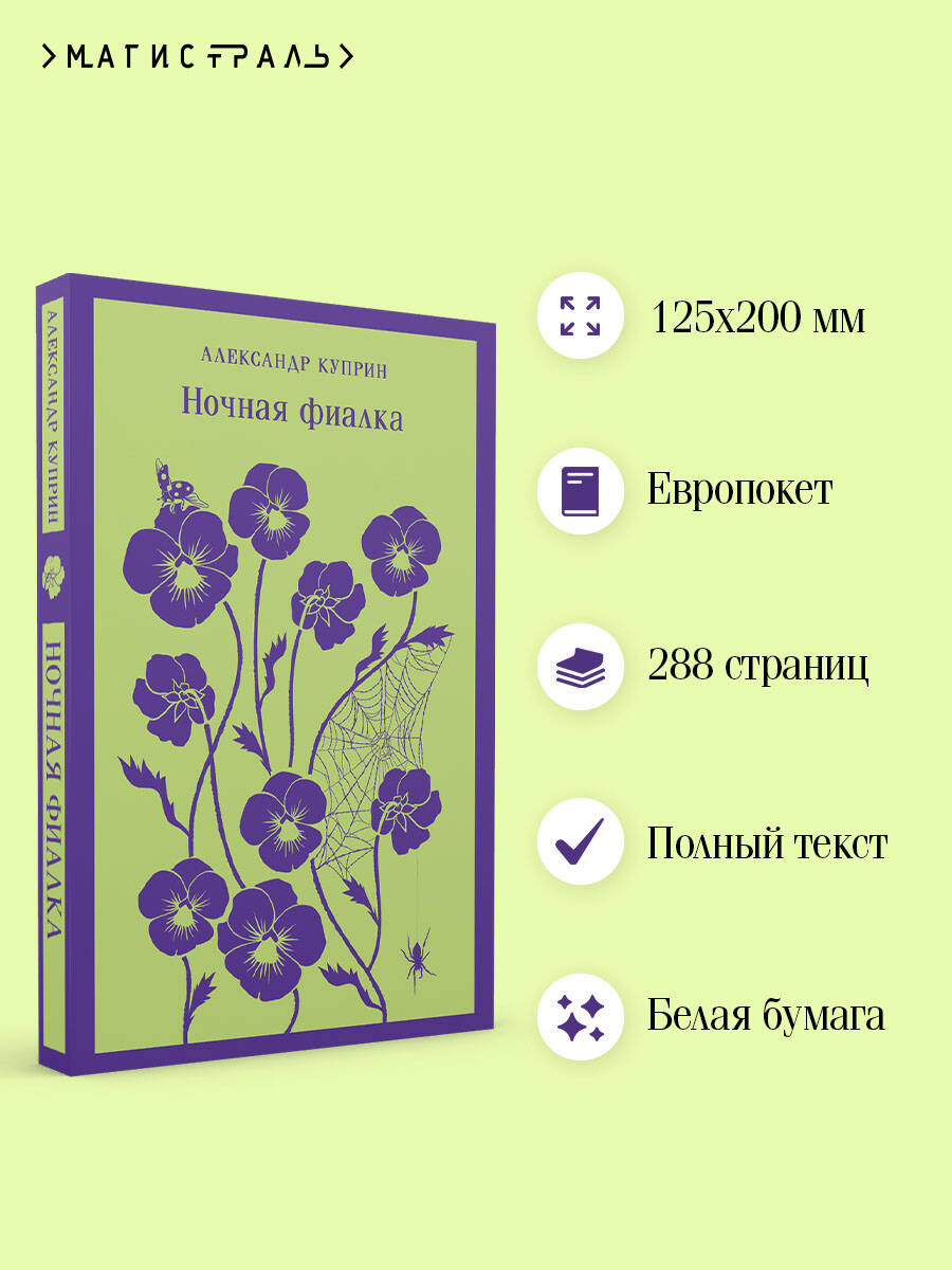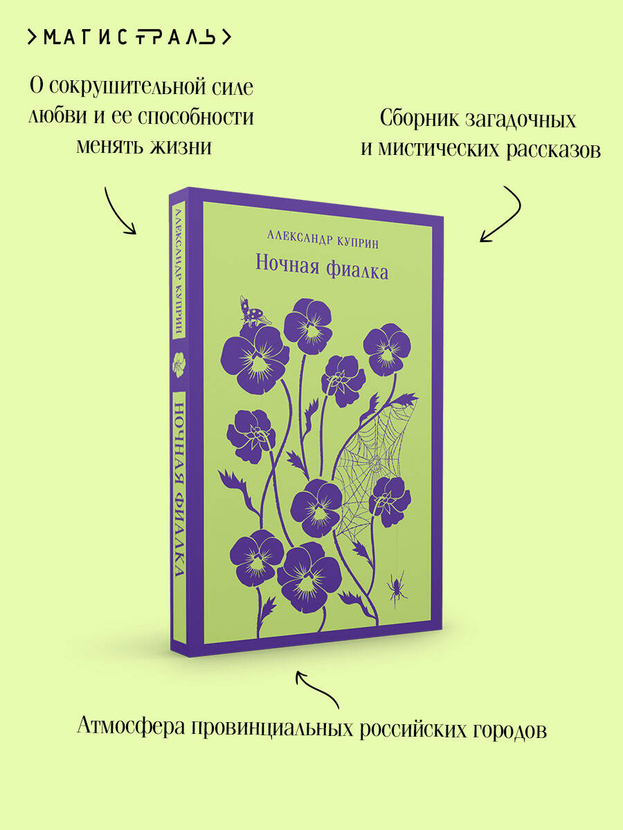 Александр Куприн - один из самых одиозных авторов XIX века. Его произведения критиковали за «излишний натурализм» и «душещипательность». А сейчас они входят в «золотой фонд» русской классики. В молодости сменил десятки профессий, что помогло ему хорошо «изучить натуру человека». Характеры его героев глубоки и многослойны, он узнаваем благодаря своему легкому стилю и языку на уровне чувств. Сборник рассказов «Ночная фиалка» с размаху окунает читателя в быт небольших уездных городов. Под маской размеренной жизни там кипят нешуточные страсти. Высокие идеалы ломаются о черствость и себялюбие, за красивой внешностью скрываются низменные пороки. Любовь здесь - не чистое, возвышенное чувство. Нет, оно затуманивает разум, заставляет героев совершать безрассудные поступки - и в конечном итоге ломает судьбы. Никто не останется прежним. Даже если выстоит. В книгу вошли рассказы «Одиночество», «Леночка», «Морская болезнь» и «Ночная фиалка», а также повести «Впотьмах», «Суламифь» и «Святая любовь».| Издательство | ООО "Издательство "Эксмо" |