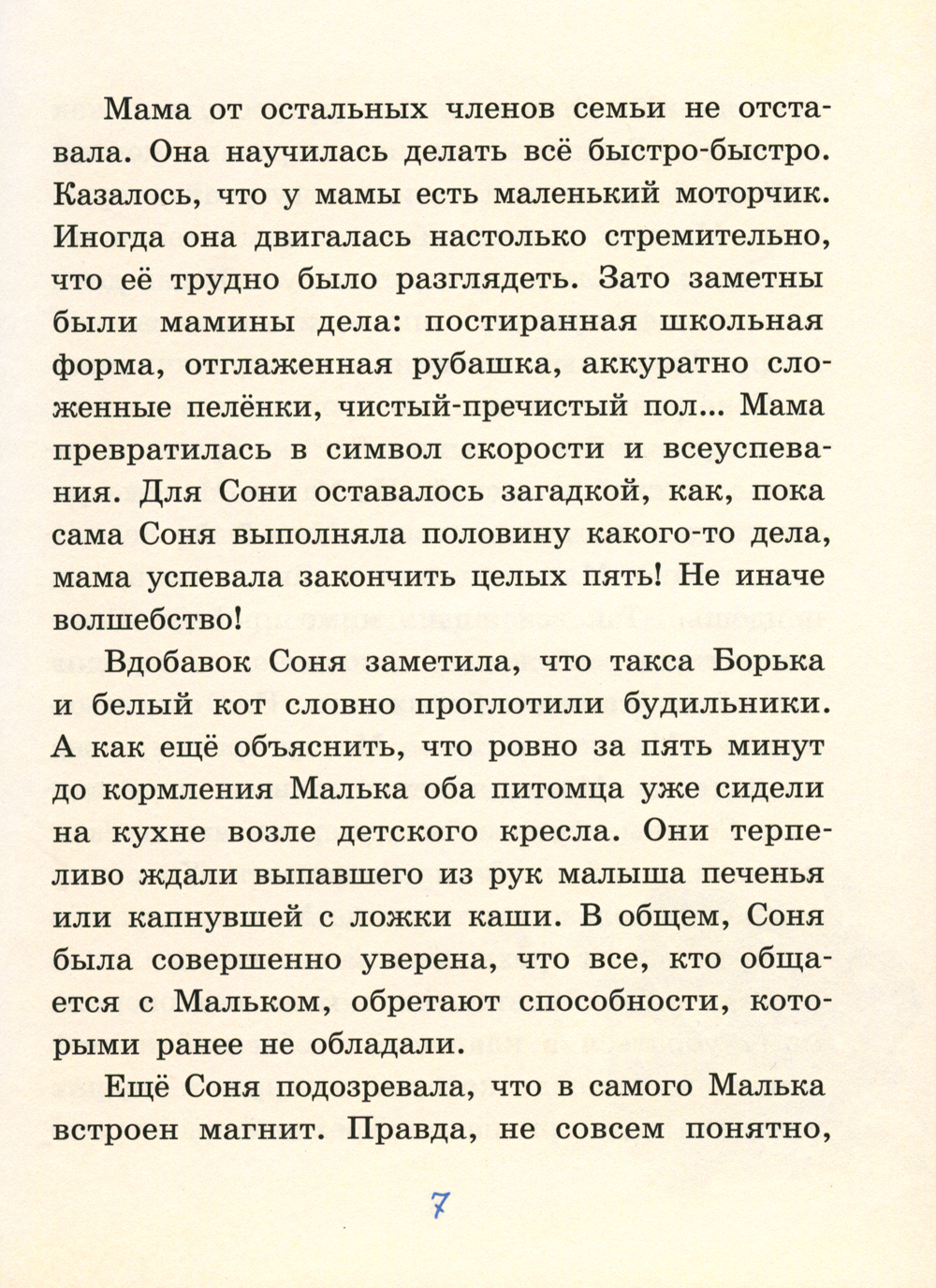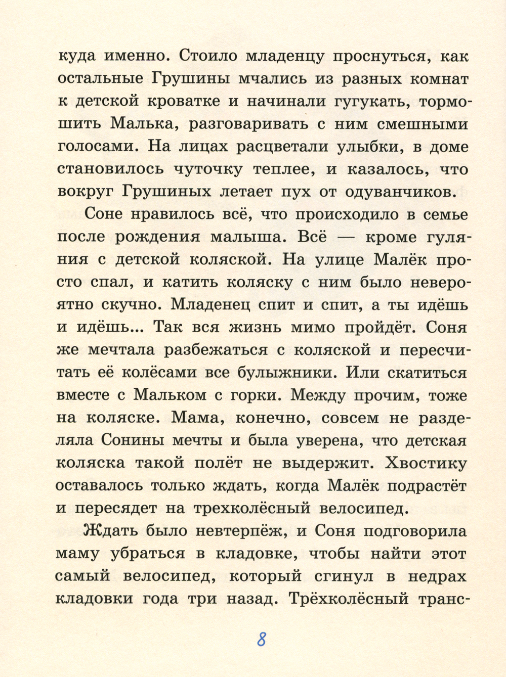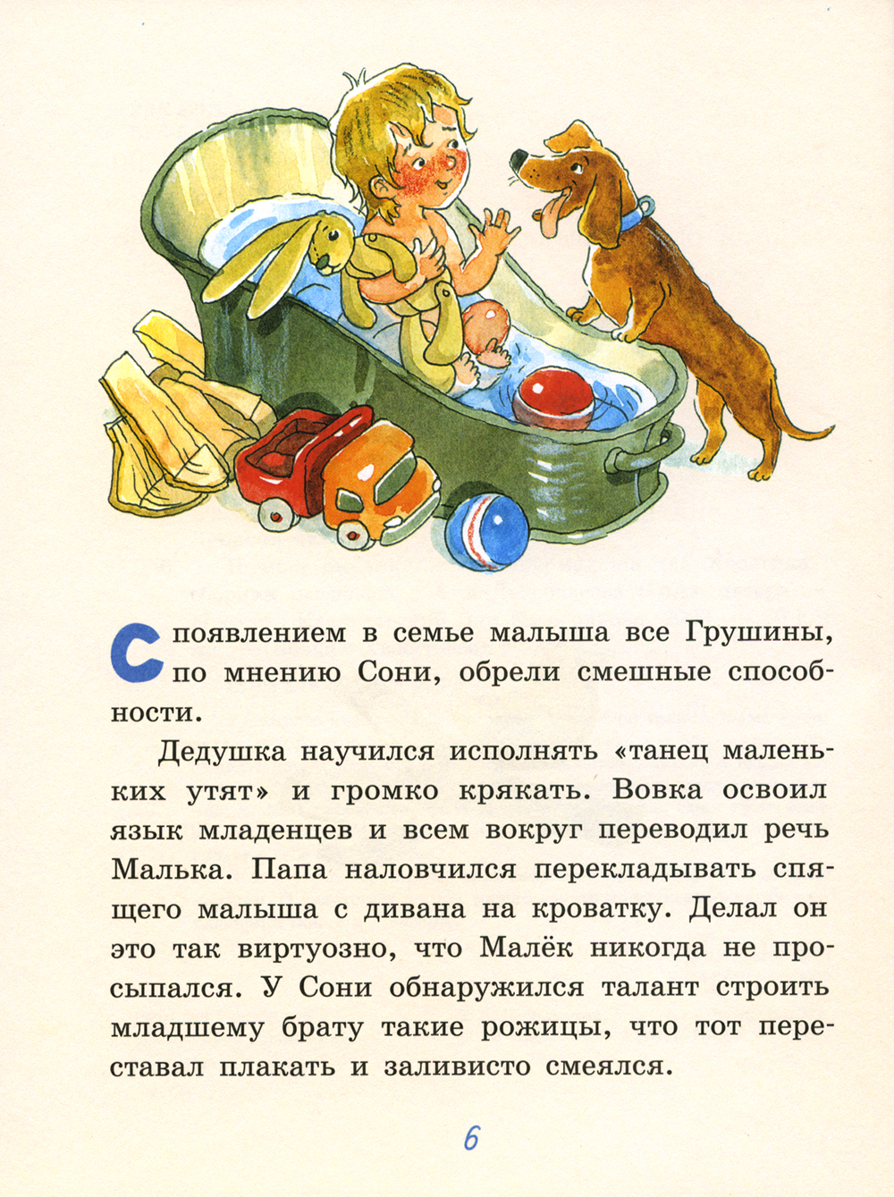 У каждого члена семьи Грушиных есть свой талант. Мама умеет делать всё быстро-быстро. Папа сочиняет поэмы и ловко укладывает спать детей. Дедушка прекрасно рассказывает сказки и исполняет «танец маленьких утят». Не отстаёт от взрослых и младшее поколение: Вовка научился говорить на языке младенцев, Соня умеет рисовать свои сны, а Малёк, как магнит, фантастическим образом притягивает к себе окружающих. А ещё у всех Грушиных есть свои маленькие секреты и личные истории. О некоторых из них можно узнать из очередной книги приключений Вовки и Хвостика.
