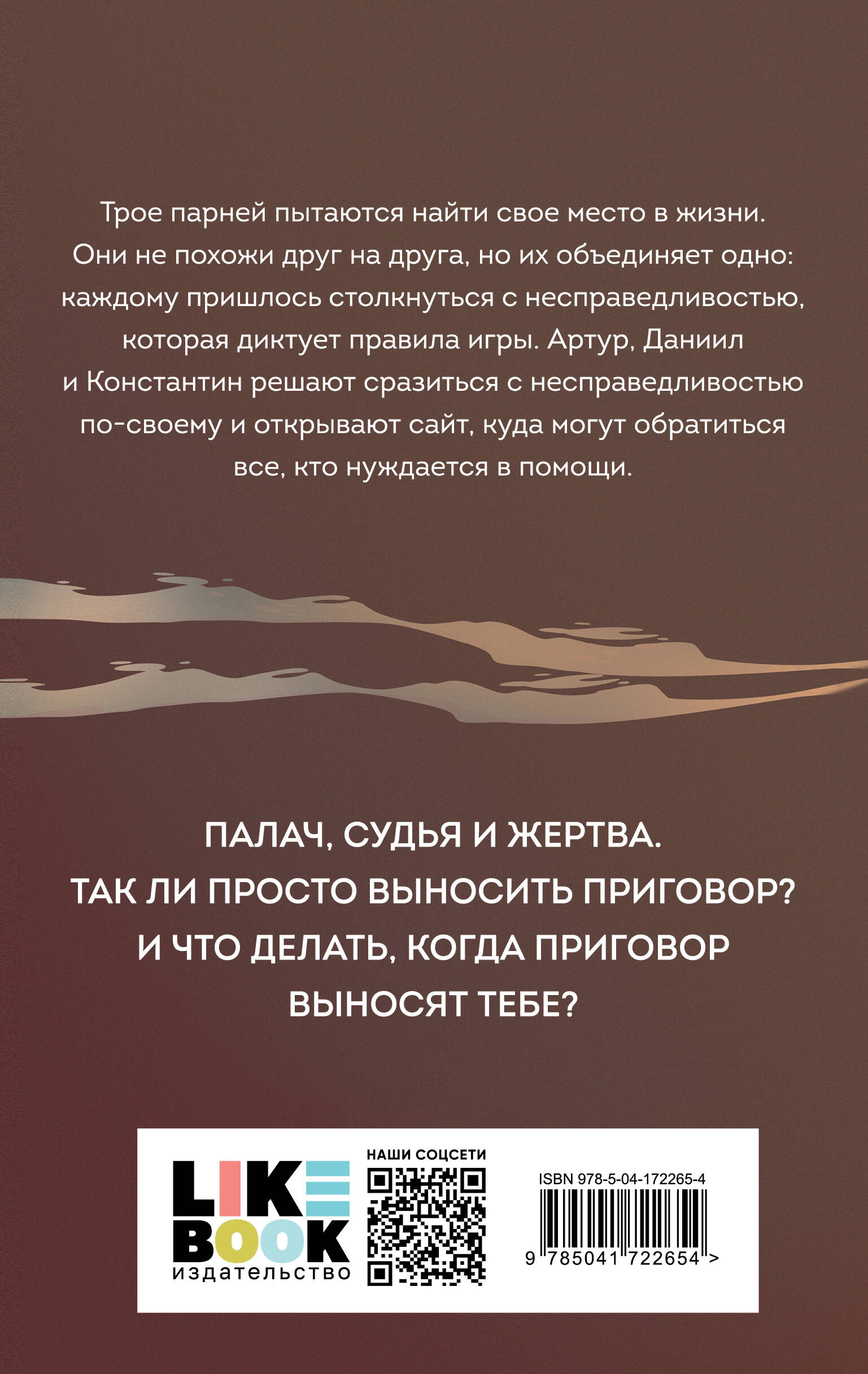 Переиздание романа от автора бестселлеров «Домой не по пути» и «Одинокие души» Эшли Дьюал. У каждого из нас своя клетка. Трое парней пытаются найти свое место в жизни. Они не похожи друг на друга, но их объединяет одно: каждому пришлось столкнуться с несправедливостью, которая диктует правила игры. Артур, Даниил и Константин решают сразиться с несправедливостью по-своему и открывают сайт, куда могут обратиться все, кто нуждается в помощи. Палач, судья и жертва. Так ли просто выносить приговор? И что делать, когда приговор выносят тебе?| Издательство | ООО "Издательство "Эксмо" |