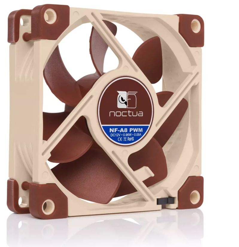 Вентилятор Noctua NF‑A8 PWM - это высококачественный тихий 80 мм вентилятор, оснащённый рамкой AAO (Advanced Acoustic Optimisation) с вибропоглощающими накладками, ступенчатым входом воздуха и микроструктурированной поверхностью. Оснащён подшипником SSO2 с повышенной стабильностью и долговечностью, а также PWM‑управлением через микросхему NE‑FD1 с технологией SCD, что значительно снижает шум на низких оборотах. В комплекте - адаптер Low‑Noise‑Adaptor (снижает макс. скорость до 1750 ±10 % RPM), Y‑кабель, удлинительный кабель (30 см), антивибрационные крепления и винты. Надёжность подтверждена средним сроком наработки более 150 000 ч.