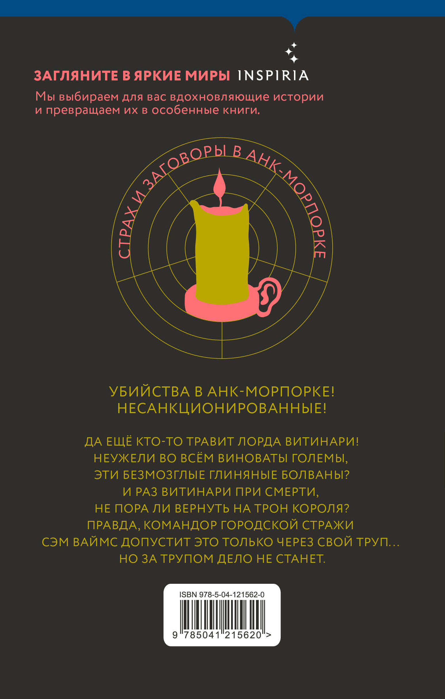 Убийства в Анк-Морпорке! Конечно, здесь убийства - обычное дело, но эти - несанкционированные! Да ещё кто-то травит лорда Витинари! Неужели во всём виноваты големы, эти безмозглые глиняные болваны? И раз Витинари при смерти, не пора ли вернуть на трон короля? Правда, командор Городской Стражи Сэм Ваймс допустит это только через свой труп... Но за трупом дело не станет.| Издательство | ООО "Издательство "Эксмо" |
