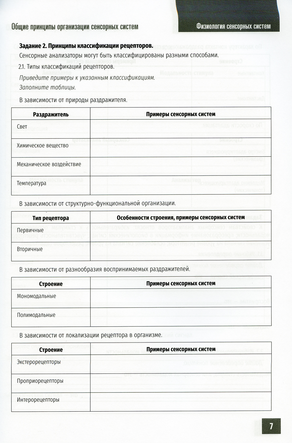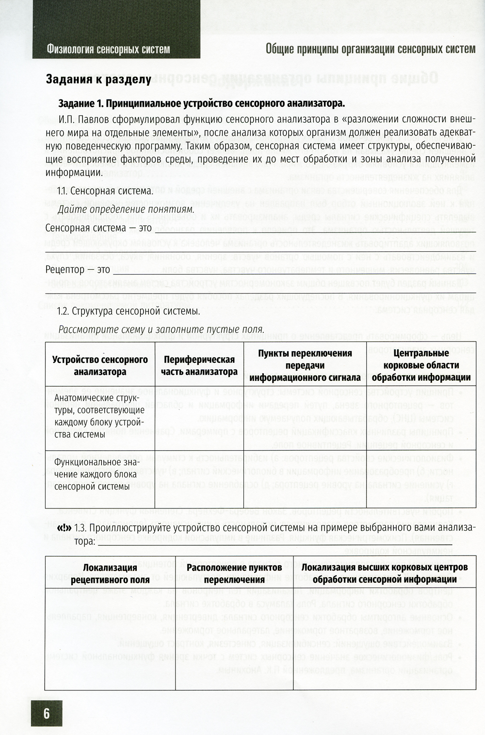 Нормальная физиология. Физиология сенсорных систем. Рабочая тетрадь