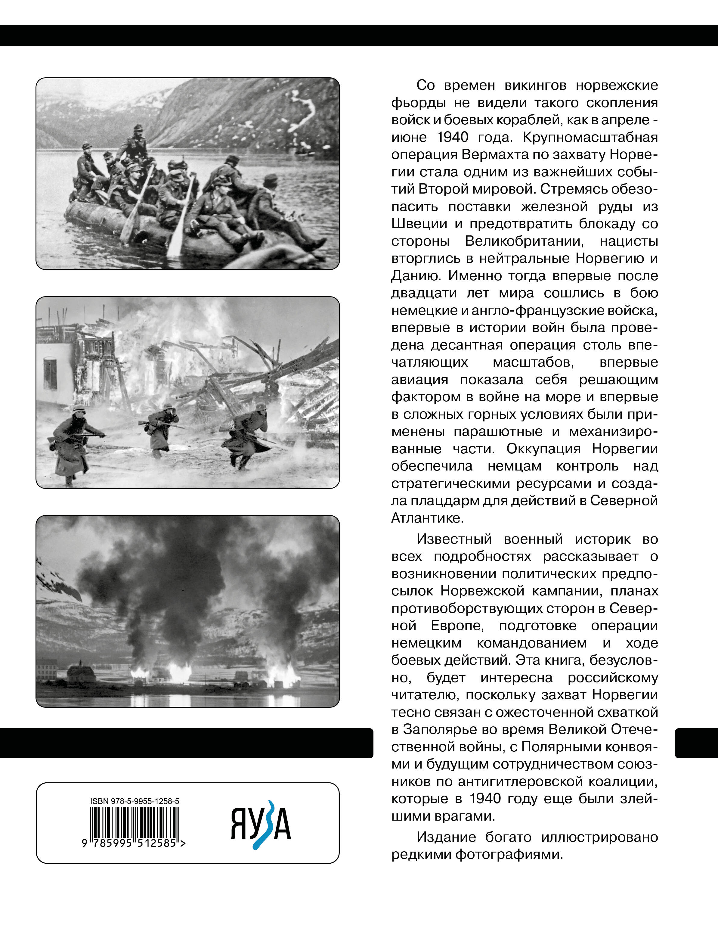 Со времен викингов норвежские фьорды не видели такого скопления войск и боевых кораблей как в апреле-июне 1940 года. Крупномасштабная операция Вермахта по захвату Норвегии стала одним из важнейших событий Второй Мировой. Стремясь обезопасить поставки железной руды из Швеции и предотвратить блокаду со стороны Великобритании, нацисты вторглись в нейтральные Норвегию и Данию. Именно тогда впервые после двадцати лет мира сошлись в бою немецкие и англо-французские войска, впервые в истории войн была проведена десантная операция столь впечатляющих масштабов, впервые авиация показала себя решающим фактором в войне на море и впервые в сложных горных условиях были применены парашютные и механизированные части. Оккупация Норвегии обеспечила немцам контроль над стратегическими ресурсами и создала плацдарм для действий в Северной Атлантике. Известный военный историк во всех подробностях рассказывает о возникновении политических предпосылок Норвежской кампании, планах противоборствующих сторон в Северной Европе, подготовке операции немецким командованием и ходе боевых действий. Эта книга, безусловно, будет интересна российскому читателю, поскольку захват Норвегии тесно связан с ожесточенной схваткой в Заполярье во время Великой Отечественной войны, с Полярными конвоями и будущим сотрудничеством союзников по антигитлеровской коалиции, которые в 1940 году еще были злейшими врагами. Издание богато иллюстрированно редкими фотографиями.| Издательство | Яуза-пресс ООО |
