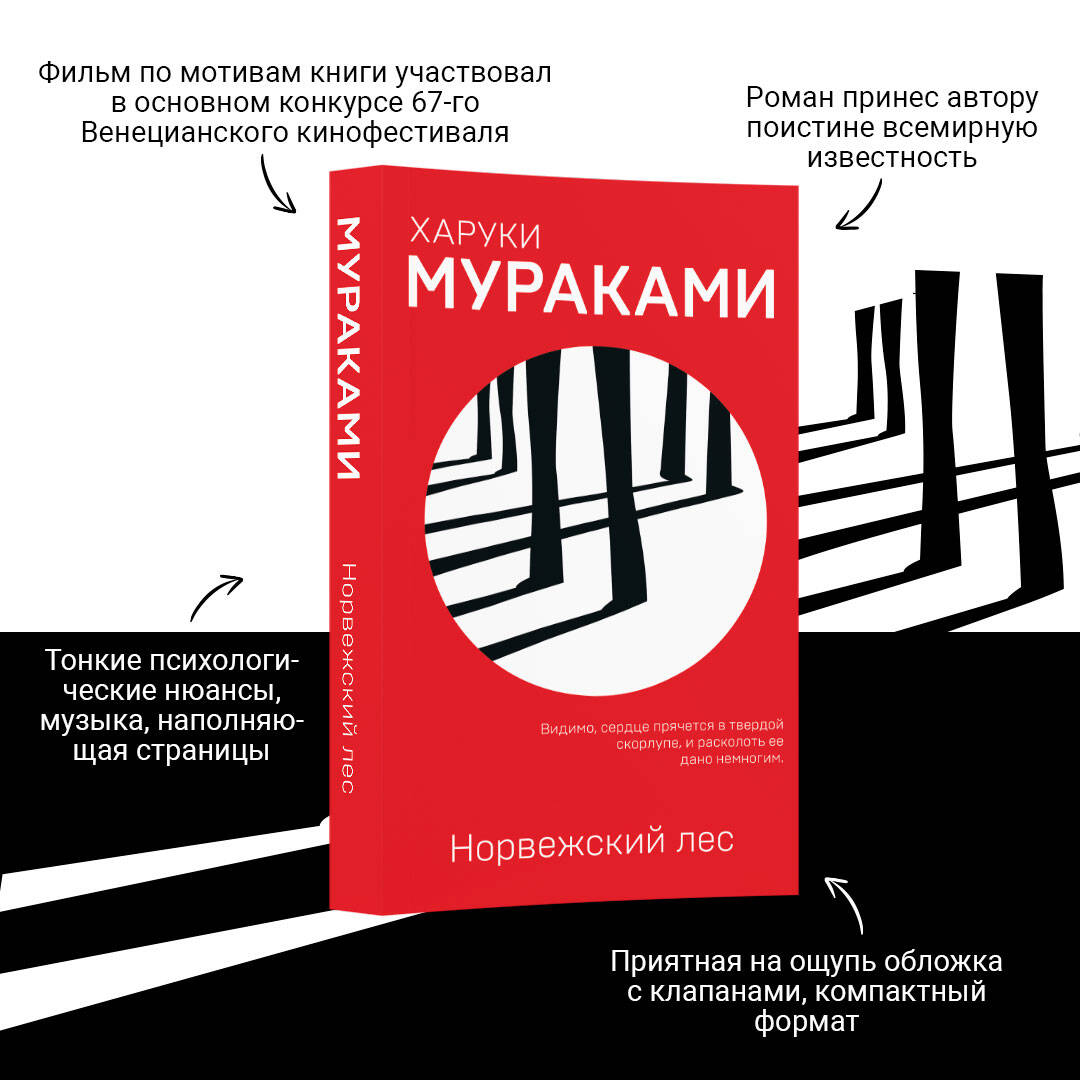 Харуки Мураками - самый знаменитый и невероятно популярный японский писатель. Все его книги, выходившие на русском, стали национальными бестселлерами, переведены на множество языков и отмечены многочисленными литературными премиями по всему миру. Мураками собирался написать стопроцентный любовный роман. Но если это любовная история, то чья и с кем? Сюжет здесь тройной, но это не любовный треугольник. Ловушки и намеки, мистика и обыденность. Странная история... Сколько читателей - столько и ответов. «Едва самолет приземлился, из динамиков тихо полилась инструментальная музыка. Оркестр исполнял "Norwegian Wood" "Битлз". И эта мелодия разбередила меня намного сильнее, чем обычно… Я думал о потерях в своей жизни: упущенном времени, умерших и ушедших людях, канувших мыслях». Воспоминания о необыкновенной девушке Наоко нахлынули на Ватанабэ. Что такое настоящая Любовь и как научиться доверять кому-то? «- Ты правда меня никогда не забудешь? --тихо, почти шепотом спросила она. - Никогда, - ответил я. - Мне тебя незачем забывать». Роман «Норвежский лес» принес автору поистине всемирную известность. Тонкие психологические нюансы, музыка, наполняющая страницы, эротизм - все это есть в романе, от которого невозможно оторваться. Фильм по мотивам бестселлера участвовал в основном конкурсе 67-го Венецианского кинофестиваля!| Издательство | ООО "Издательство "Эксмо" |