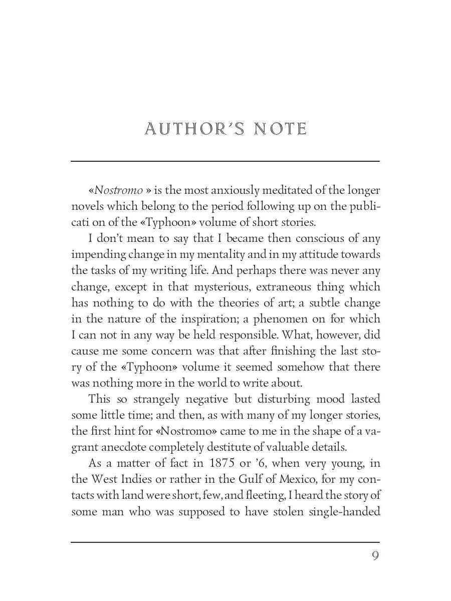 Nostromo: A Tale of the Seaboard is a 1904 novel by Joseph Conrad, set in the fictitious South American republic of "Costaguana". The events described in the novel are typical for political life in underdeveloped countries. The author takes up the problem of imperialism and its corrupting action even on the best people, which is the main character of the novel - the sailor Nostromo.