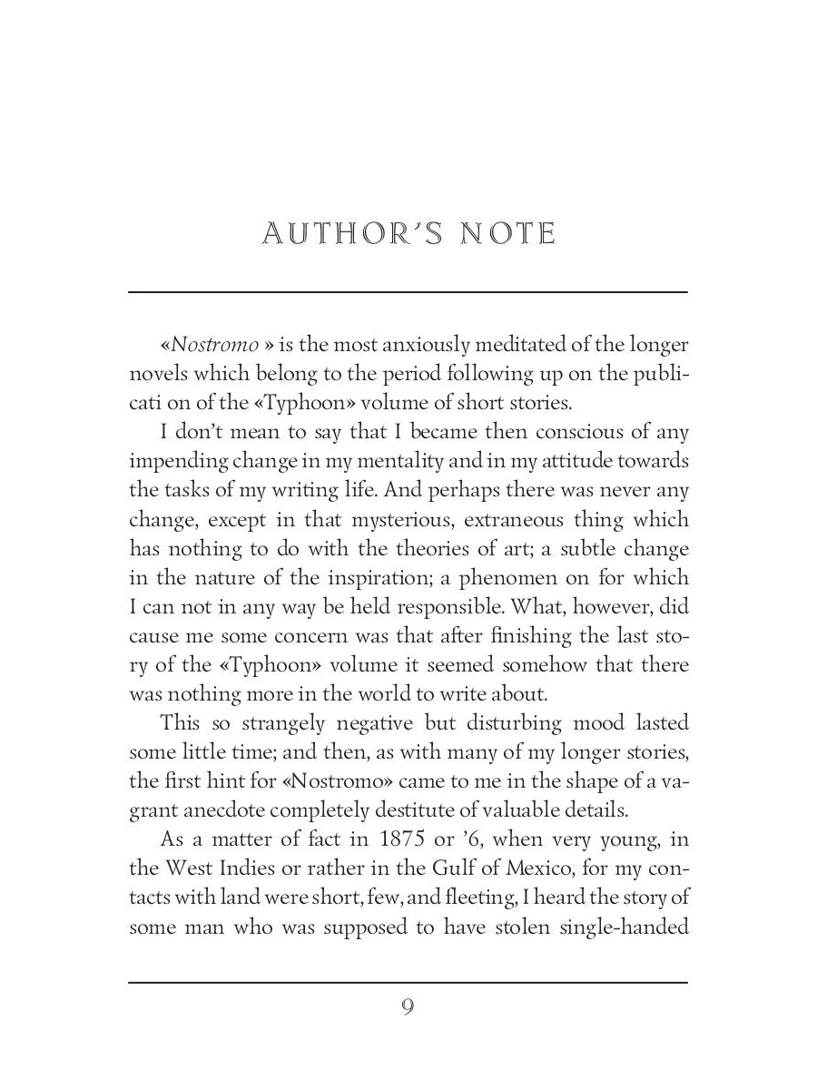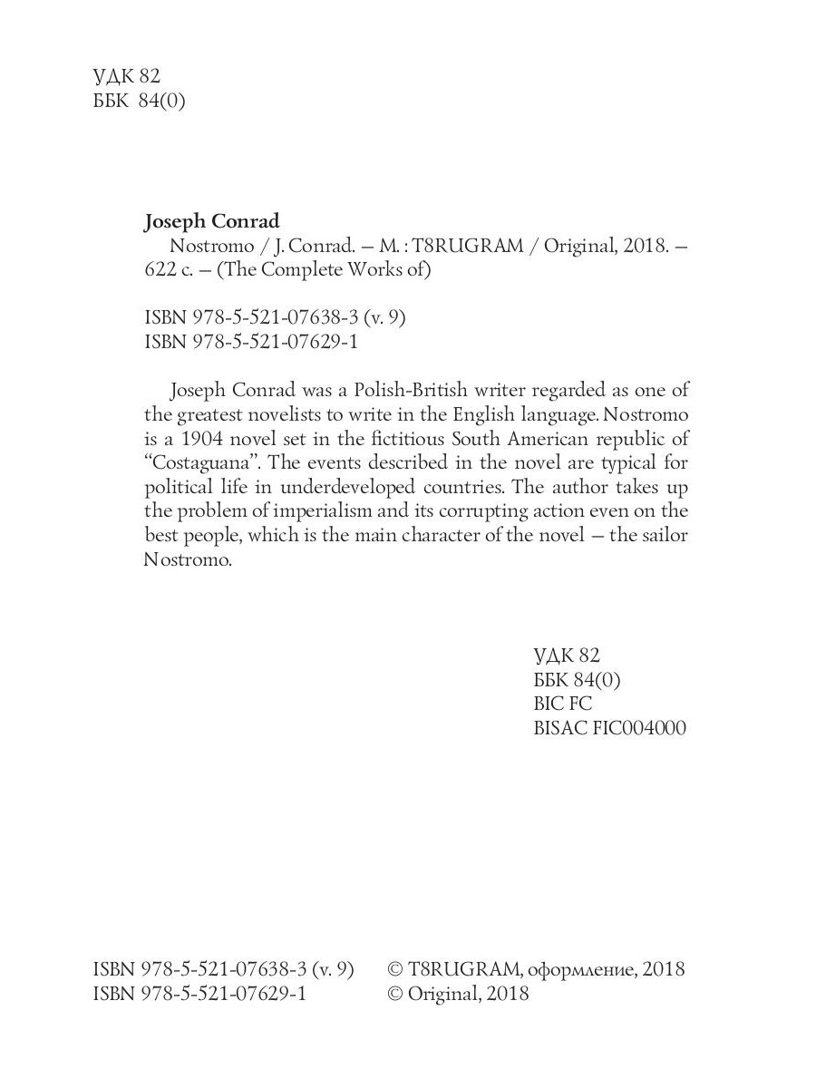 Joseph Conrad was a Polish-British writer regarded as one of the greatest novelists to write in the English language. Nostromo is a 1904 novel set in the fictitious South American republic of "Costaguana". The events described in the novel are typical for political life in underdeveloped countries. The author takes up the problem of imperialism and its corrupting action even on the best people, which is the main character of the novel - the sailor Nostromo.