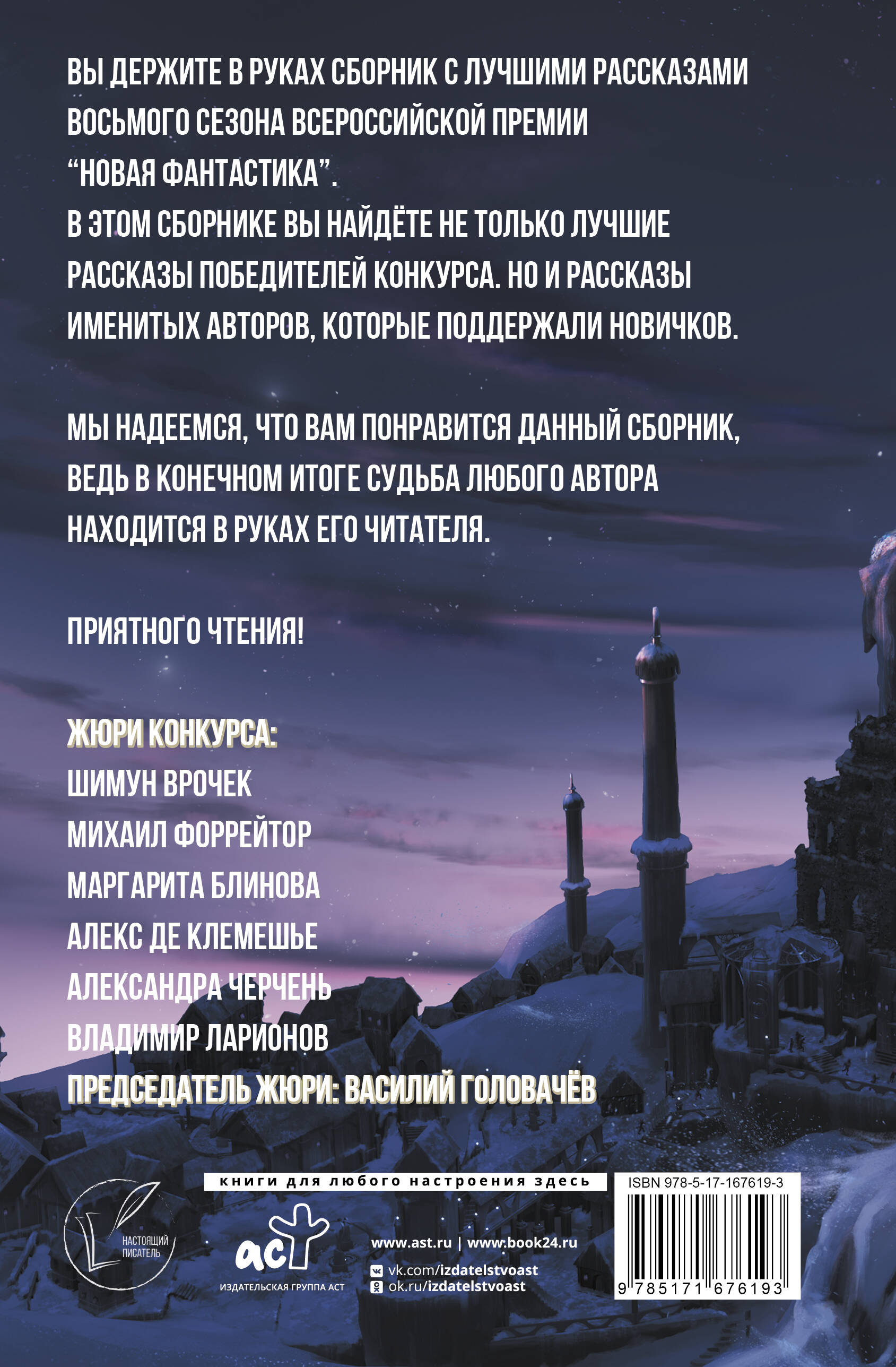 Вы держите в руках сборник с лучшими рассказами восьмого сезона всероссийской премии "Новая фантастика". В этом сборнике вы найдете не только лучшие рассказы победителей конкурса, но и рассказы именитых авторов, которые поддержали новичков. Мы надеемся, что вам понравится данный сборник, ведь в конечном итоге судьба любого автора находится в руках его читателя. Жюри конкурса: Шимун Врочек, Михаил Форрейтер, Маргарита Блинова, Алекс де Клемешье, Александра Черчень, Владимир Ларионов Председатель жюри: Василий Головачёв| Издательство | Издательство "АСТ" |