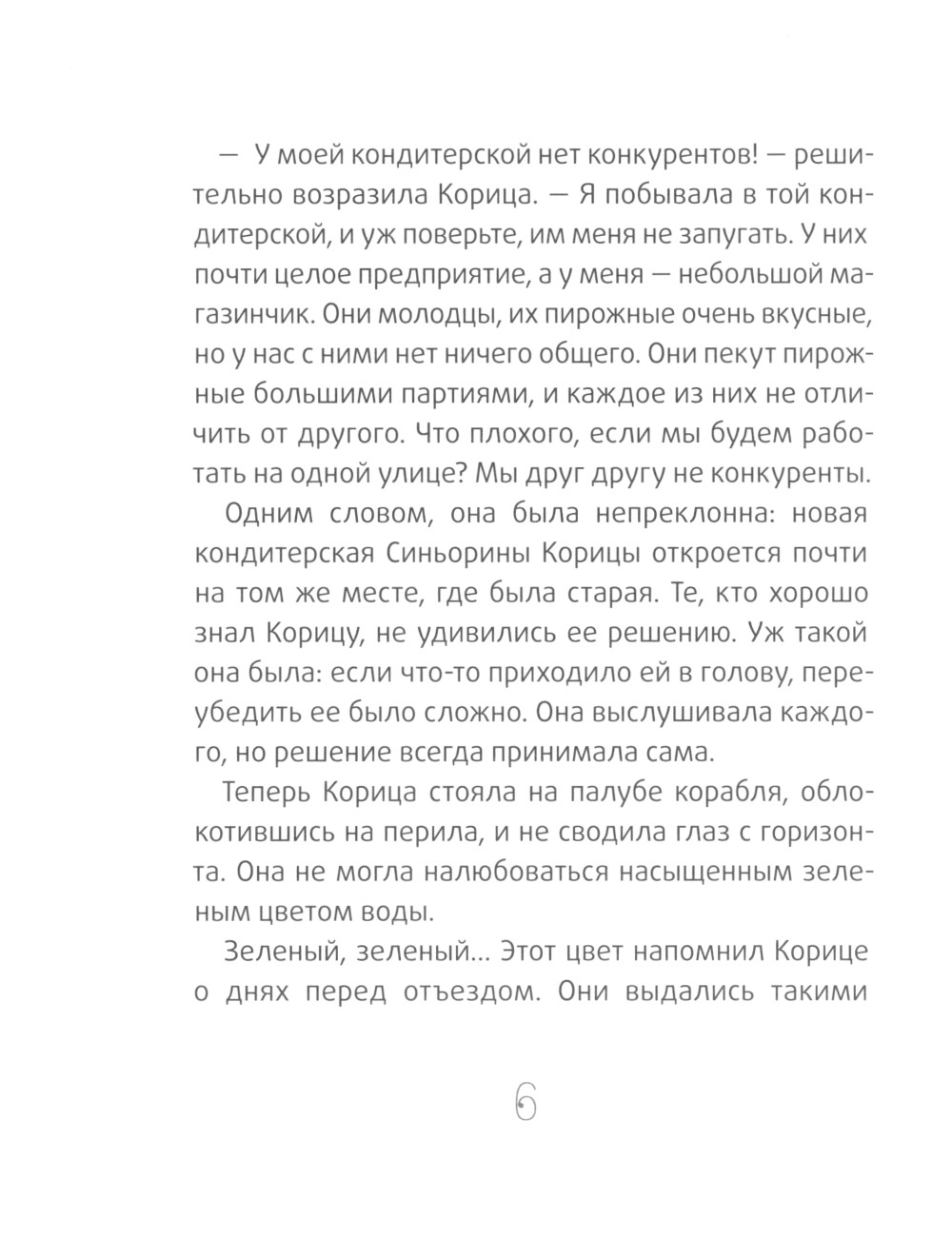 Синьорина Корица - самый необычный кондитер на свете! Для каждого посетителя она придумывает свой десерт, который понравится именно ему. Но теперь ее магазинчик снесли, чтобы выстроить большой торговый центр... Только Корица не сдается. Ведь ее сладости не просто красивые и удивительно вкусные - они творят чудеса. Лимонное пирожное «все-будет-хорошо» придает уверенности. А хрустящая корзиночка «нужно-набраться-терпения-если-все-идет-не-по-плану» помогает справиться с трудной ситуацией. Так что Корица непременно снова откроет кондитерскую и будет готовить свои знаменитые пирожные! Конечно, Синьорине Корице помогут любимые ученики Марта и Маттео и новый друг - талантливый парфюмер Эудженио де Розмарини. Маттео просто влюбился в его лабораторию! Оказывается, у кондитерского дела немало общего с парфюмерным: строгие рецепты, полет фантазии и, разумеется, завораживающие ароматы. Но способны ли они спасти дружбу, вернуть доверие и подарить надежду? Итальянский писатель, журналист и сценарист Луиджи Баллерини (родился в 1963 году) придумал, как совместить свое увлечение кулинарией и любовь к детской литературе. «Синьорина Корица» в 2014 году получила главную итальянскую награду Premio Andersen в категории «Лучшая книга для читателей 9-12 лет». Эта городская сказка понравилась и российским сладкоежкам - а теперь «КомпасГид» представляет ее продолжение.| Издательство | ИД КомпасГид |