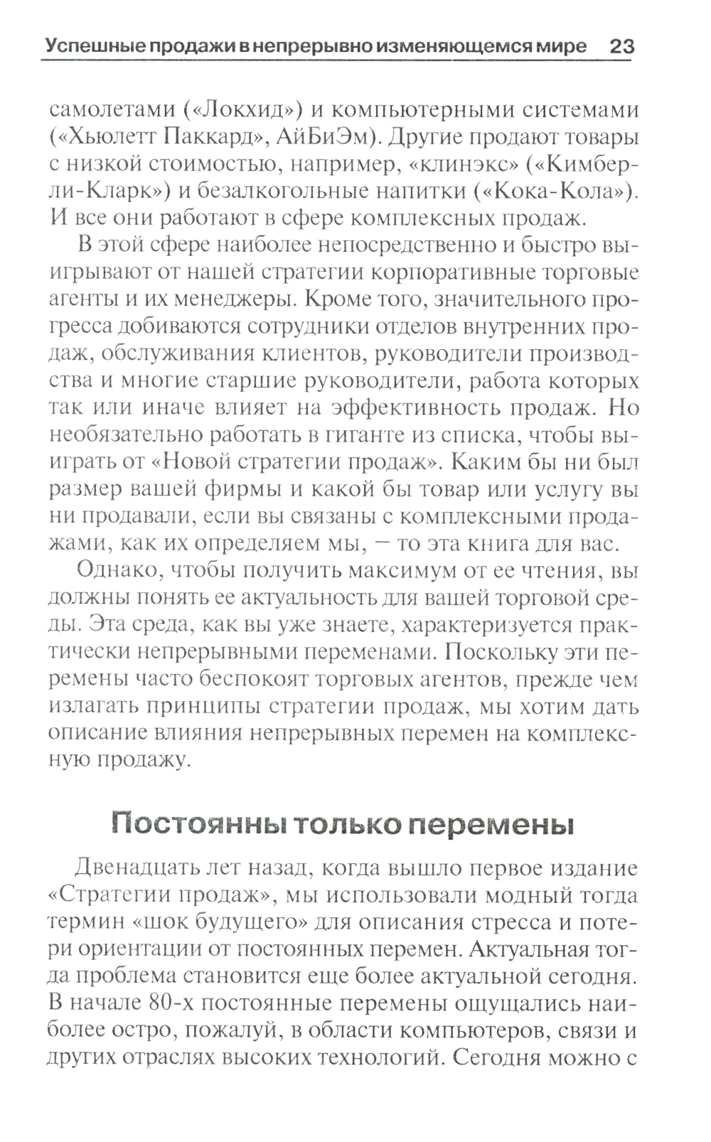 В 1985 г. одна книга навсегда смогла изменить положение в области продаж и маркетинга. Отбросив тактику манипулирования и заострив внимание на "процессе", "Стратегия продаж" предложила рассматривать продажу как совместное предприятие и выдвинула самую важную концепцию десятилетия - "выигрывают все". На эту концепцию последовал немедленный отклик, что помогло превратить небольшую фирму "Миллер Хейман", создавшую "Стратегию продаж", в мирового лидера по разработке методов продаж с самым престижным списком клиентов и самым посещаемым семинаром в отрасли.