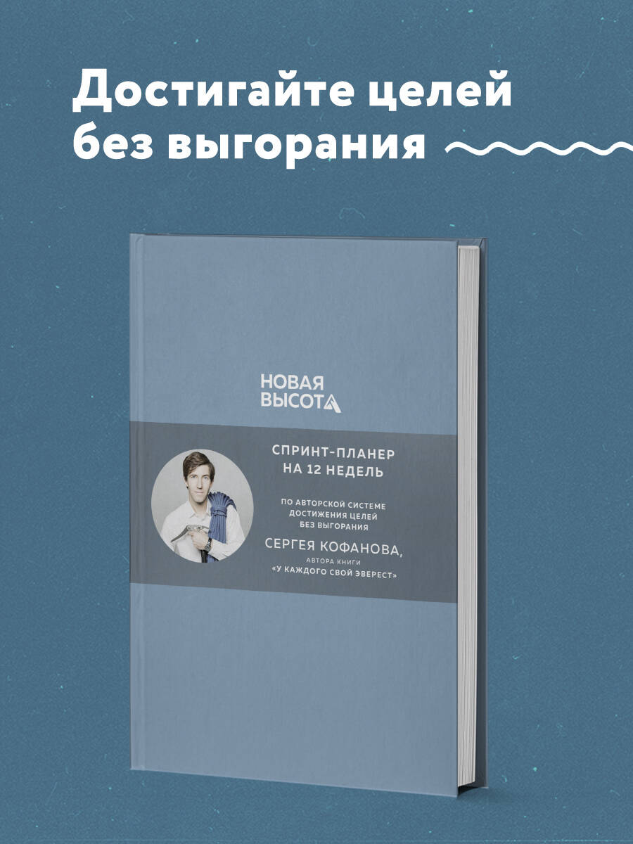 Спринт-планнер «Новая высота» на 12 недель по авторской системе достижения целей без выгорания. Вот что вы найдете внутри: - фокусировка на целях; - мониторинг прогресса; - итоги недели; - вопросы-ускорители; - вопросы-открытия; - заметки на день; - яркие выходные; - итоги недели, месяца и спринта. В этот ежедневник автор постарался включить не только инструменты, помогающие держать фокус и не сбиться с маршрута, но и вопросы, ответив на которые, вы будете лучше понимать себя и увидите более красивый и короткий путь к вашим целям. Сергей Кофанов - чемпион России по альпинизму, ИТ-предприниматель и мотивационный спикер. Автор книги «У каждого свой Эверест». Победитель премии «Деловая книга года в России 2022» в номинации «Лучшая книга в помощь бизнесу».| Издательство | ООО "Издательство "Эксмо" |