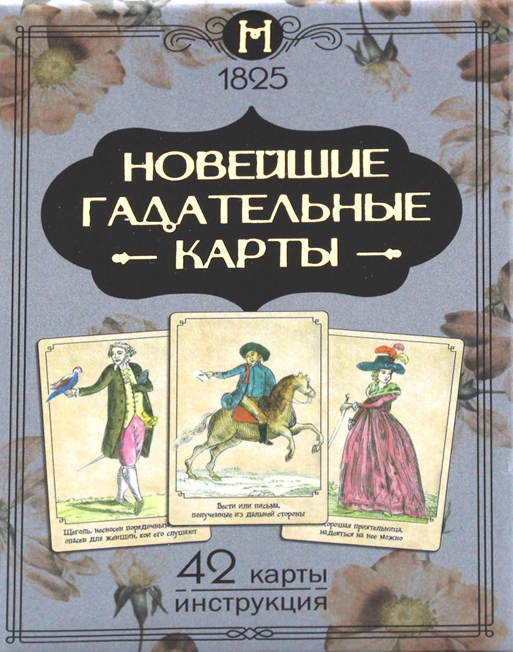 Вторая колода в серии «Наследие», «Новейшие гадательные карты», была выпущена в 1825 году типографией Московского университета. На картах изображены аллегорические картины, под каждой из которых написана пояснительная надпись. Инструкция к этой колоде написана Евгенией Устиновой - исследователем, специалистом но истории дореволюционных российских гадальных и игральных карт, создателем игральных карт и оракулов.| Издательство | Издатель А.Г.Москвичев |