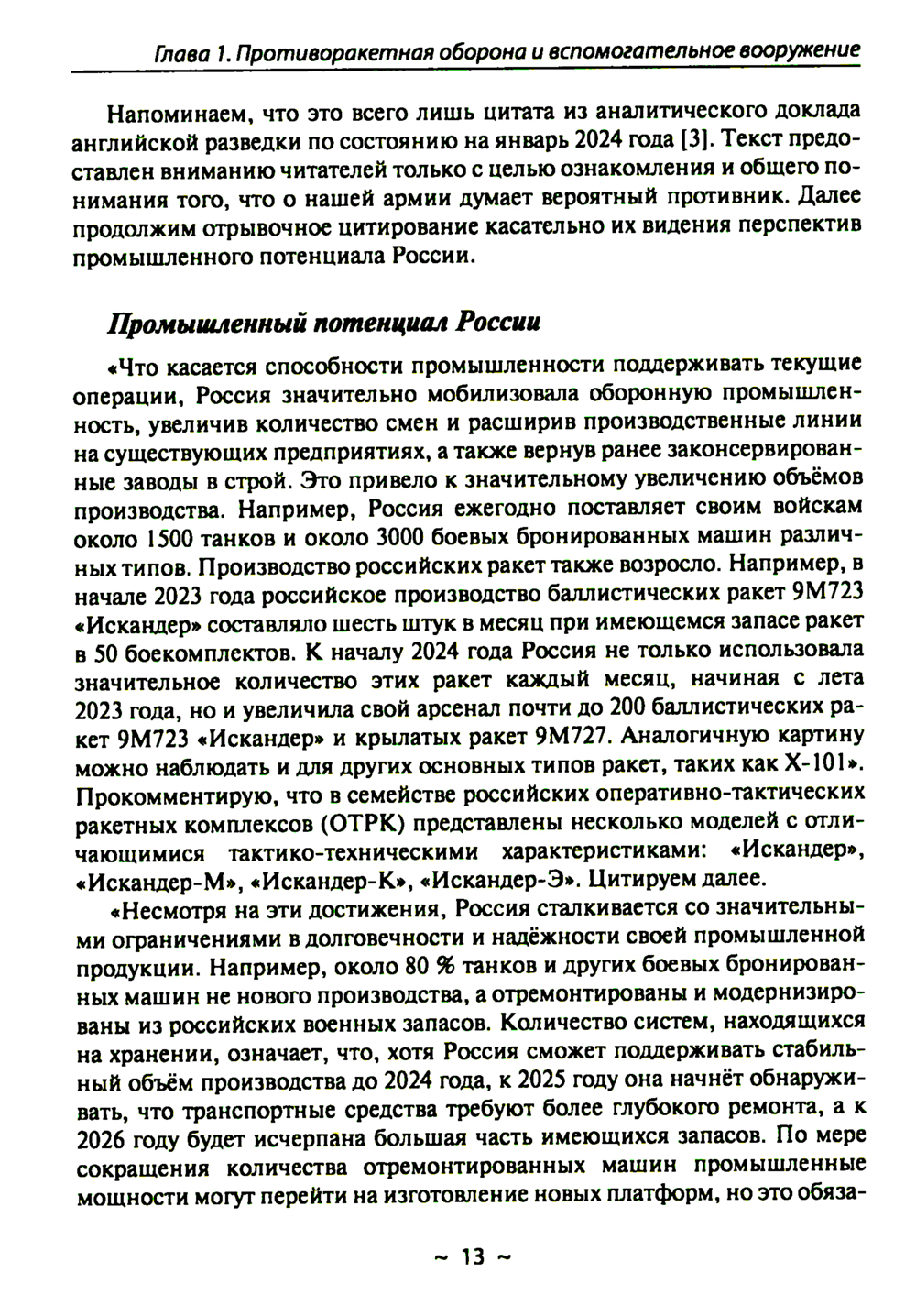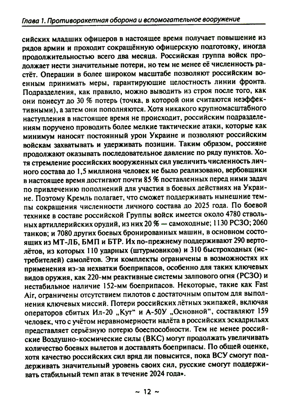 В новом веке впервые массово задействованы беспилотные «малые» дистанционно управляемые средства поражения - это низколетящие объекты, покрывающие большие расстояния. Концепция защиты территории России от тактических ракет малой и средней дальности сменилась в акценте на оборону от массовых атак БПЛА. Для нейтрализации боевых средств самолётного типа вероятного противника в России задействованы дивизионы противовоздушной обороны (ПВО) и системы противоракетной обороны (ПРО) - стратегической защиты от ракетно-ядерного удара. Оба направления защиты в соответствии с вызовами времени сливаются и взаимодействуют между собой. Задачи по защите населения и критической инфраструктуры динамично меняются. Для адекватного реагирования на угрозу на боевое дежурство заступают новейшие зенитно-ракетные комплексы (ЗРК), радиоэлектронной борьбы (РЭБ) и «подзабытых», но вновь актуальных малокалиберных артиллерийских систем - для борьбы с опасностью с воздуха. В книге рассматриваются практические особенности систем ПРО и ПВО ВКС России, концепции развития угроз на примерах конкретных систем вооружений вероятного противника и средств их локализации. Даны полезные рекомендации для сбережения жизни и здоровья во время атак с воздуха. Для широкого круга читателей, военруков учебных заведений, преподавателей ОБЖ и специалистов гражданской обороны.| Издательство | Солон-пресс |
