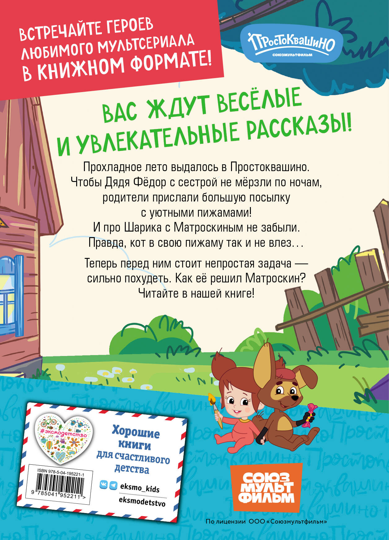 Новая встреча с героями популярного мультсериала «Новое Простоквашино» от студии «Союзмультфильм» в книжном формате! Вас ждёт увлекательный сюжет и множество ярких впечатлений! Прохладное лето выдалось в Простоквашино. Чтобы Дядя Фёдор с сестрой не мёрзли по ночам, родители прислали большую посылку с уютными пижамами! И про Шарика с Матроскиным не забыли. Правда, кот в свою пижаму так и не влез… Теперь перед ним стоит непростая задача - сильно похудеть. Как её решил Матроскин? Читайте в нашей книге! 5 весёлых историй прекрасно подойдут для детей от 3-х лет, а книгу удобно брать с собой на прогулку.| Издательство | ООО "Издательство "Эксмо" |