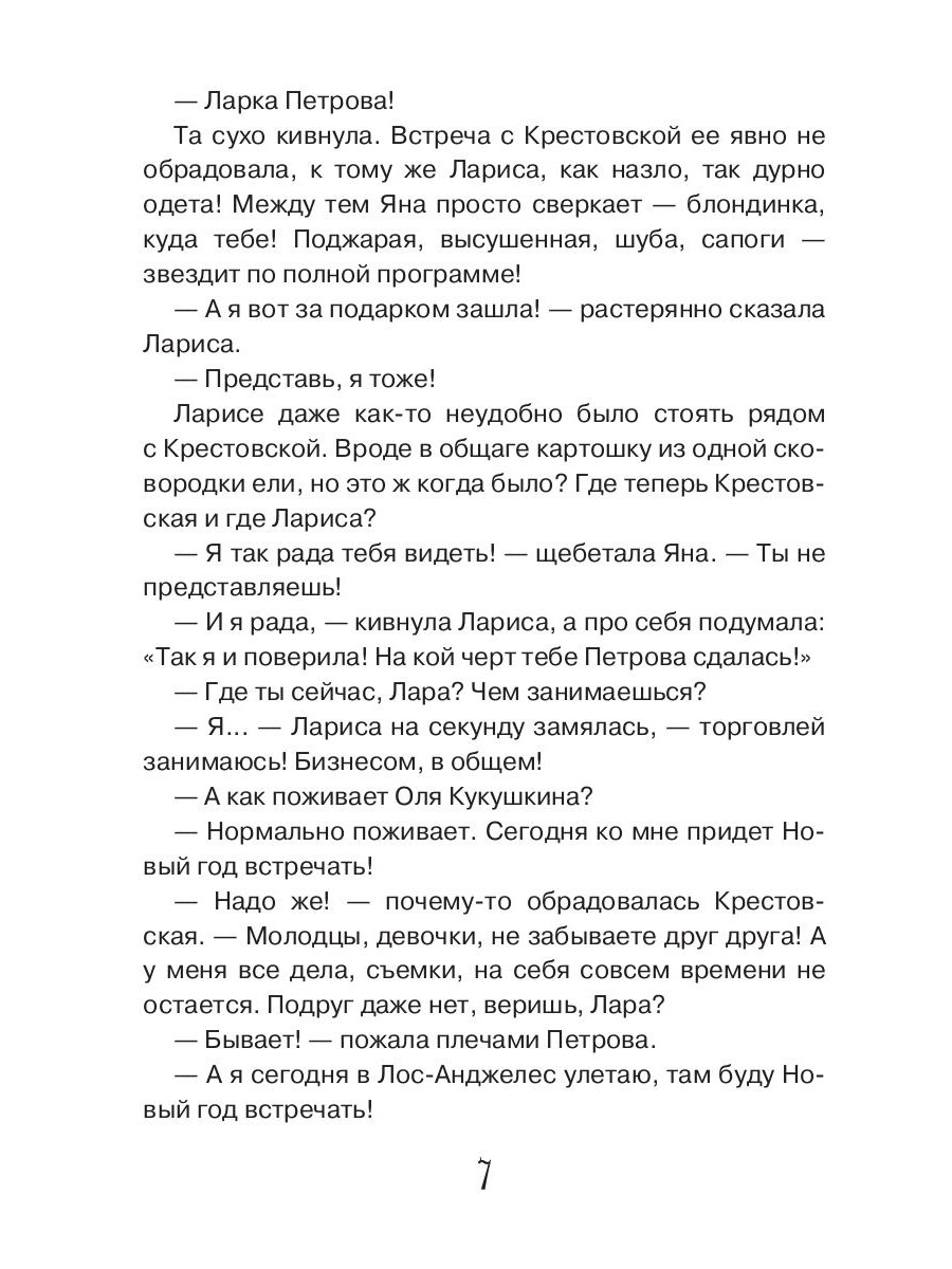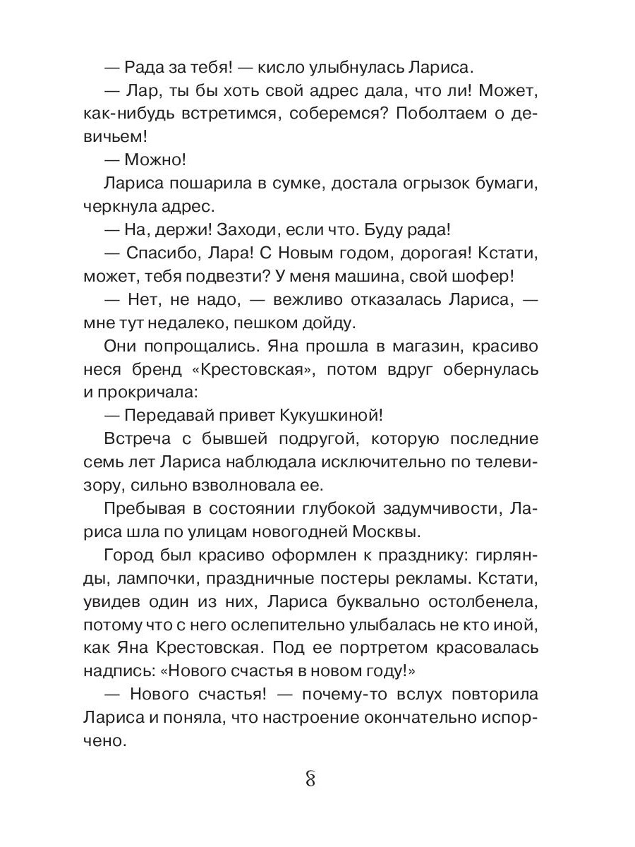 По романам Алисы Луниной снимают популярные сериалы, выходящие на Первом канале, среди которых «Новогодний рейс» и «За пять минут до января». Она пишет истории о любви, которая всегда и чудо, и боль, и выстраданное счастье. У каждой из героинь свои планы на Новый год: известная актриса Яна Крестовская собирается провести его в Лос-Анджелесе, журналистка Лиза, называющая себя Лайзой из-за сходства с Лайзой Минелли, планирует встретить Новый год со своим возлюбленным, а две закадычные подруги Петрова и Кукушкина хотят отметить праздник вдвоем у телевизора. И никто из барышень еще не знает, что скоро судьба сметет все их планы, закружит в новогодней метели, и что всех их ждет невероятная новогодняя ночь!| Издательство | Т8 RUGRAM |