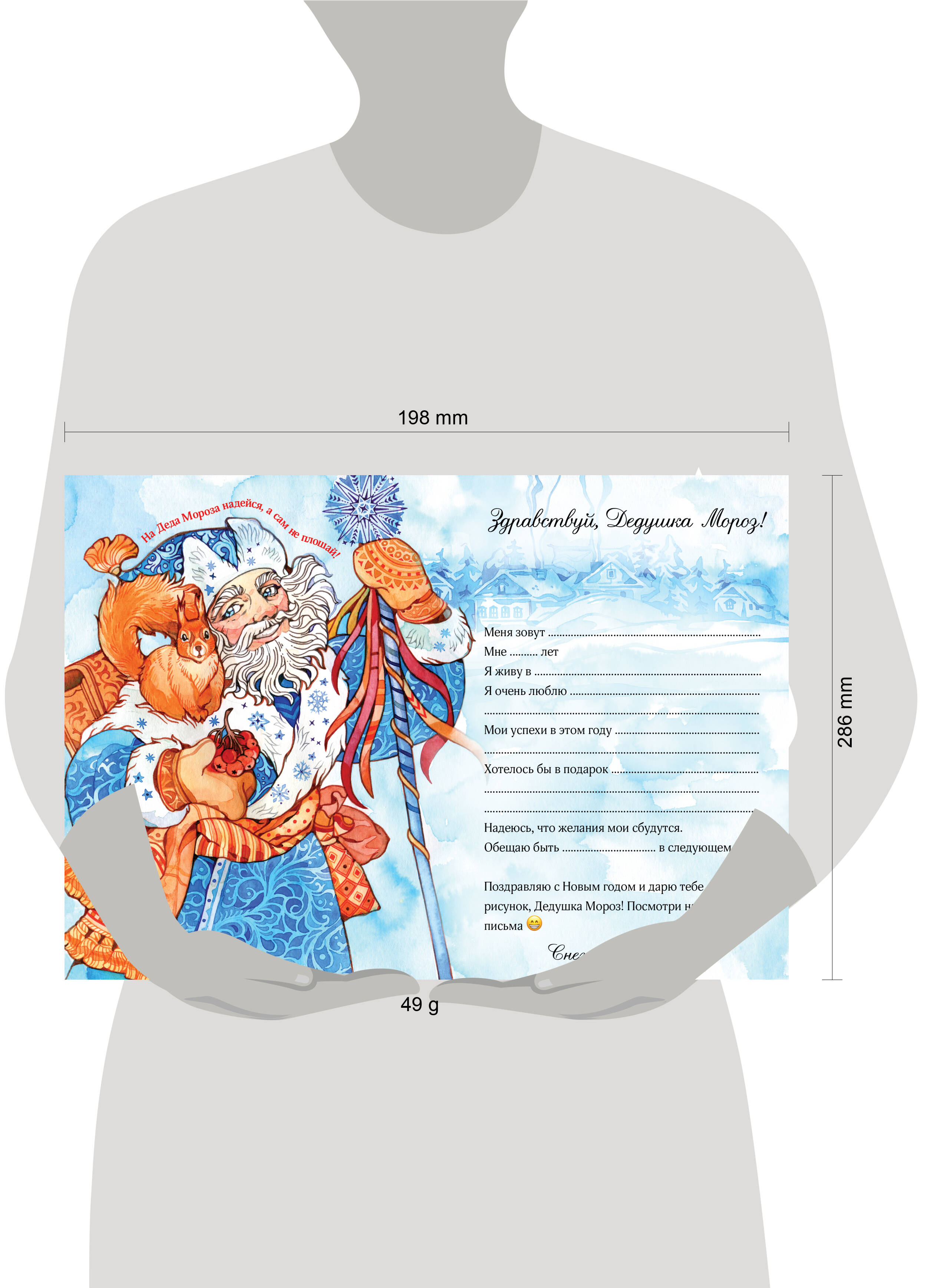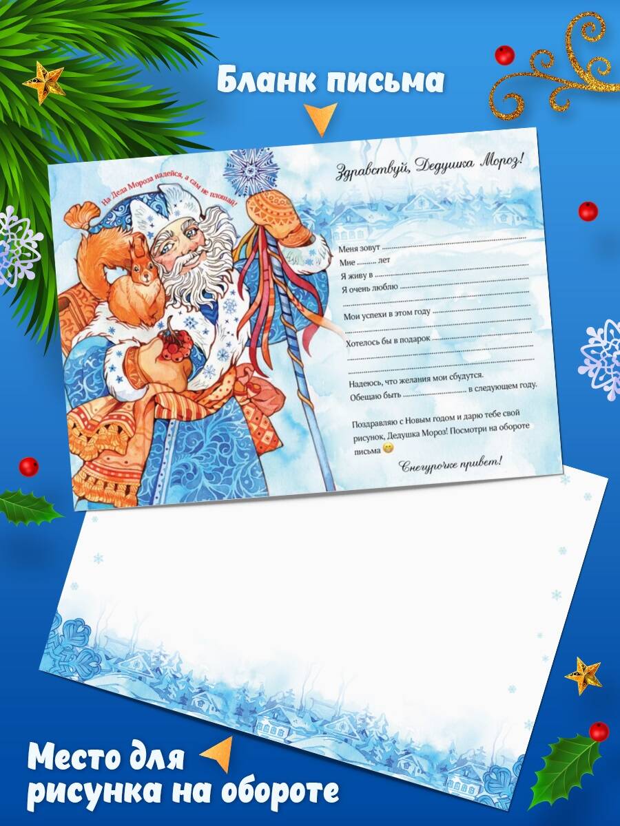 Поздней осенью у всех полно дел. А особенно у Деда Мороза. Он начинает получать свою почту от детишек по всей России и готовит подарки по спискам. Как дети любят писать письма самому главному снежному дедушке! Рассказывают о себе, продумывают свои желания, складывают письмо в конверт, а дальше - отправка. Через почтовый ящик или морозилку - экспресс-почтой. Почта Деда Мороза оставит незабываемые воспоминания у ребёнка. Письмо Деду Морозу от девочки или от мальчика обязательно попадёт по адресу, и все желания исполнятся! Почта Деда Мороза станет доброй новогодней традицией в вашем доме. В наборе: красочный лист на плотной бумаге (120 г плотностью, формат А4) с местом для пожеланий и для рисунка, конверт, плотная картонная подложка. С таким набором ребёнок поверит в чудеса, в сказку. А новогодние сказки остаются в нашей памяти надолго. Станет отличным выбором, если вы ищете новогодние подарки для детей в сад, в школу. Рекомендуется детям старше 3 лет.| Издательство | ООО "Издательство "Эксмо" |
