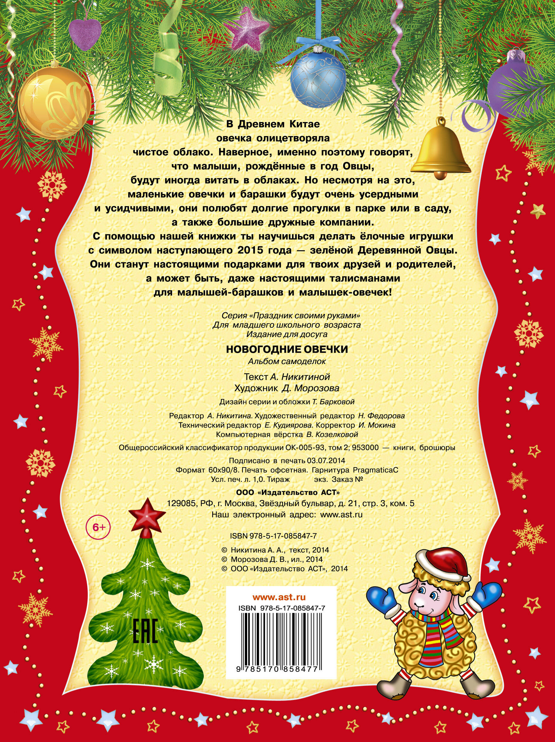 Хочешь, подарить что-то необычное своим родным и друзьям на новый год? Или украсить дом к приходу Деда Мороза так, чтобы он ахнул от восторга и подарил тебе много-много подарков? Открывай нашу книжку и… сделай самостоятельно ёлочные игрушки, гирлянды и открытки, на которых будут смешные овечки. А потом устрой новогодний маскарад - в книжке ты найдешь две маски! Весёлого Нового года!| Издательство | Издательство "АСТ" |