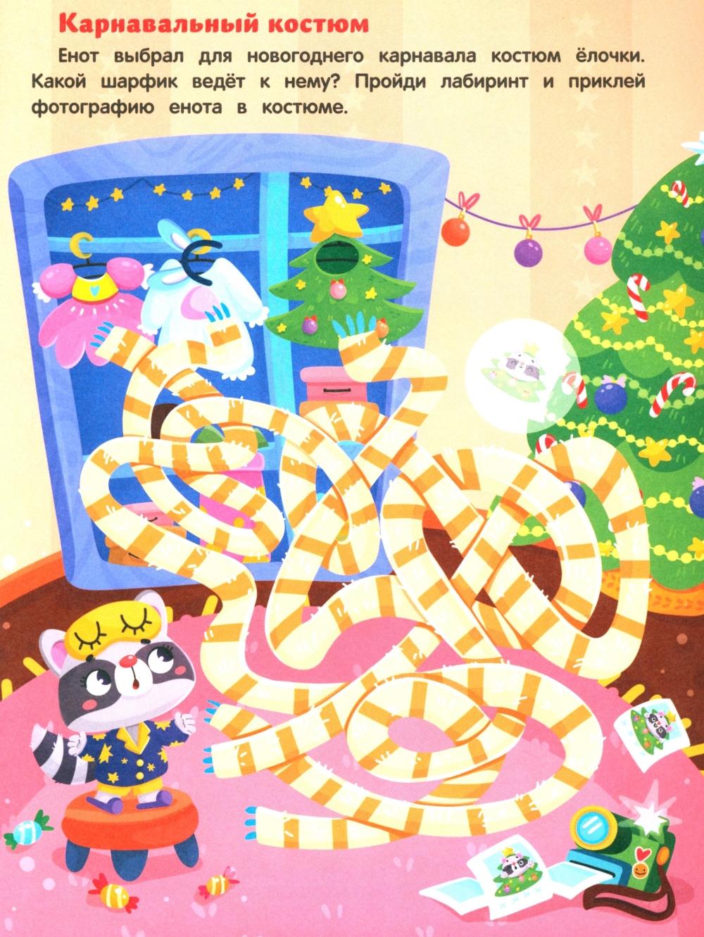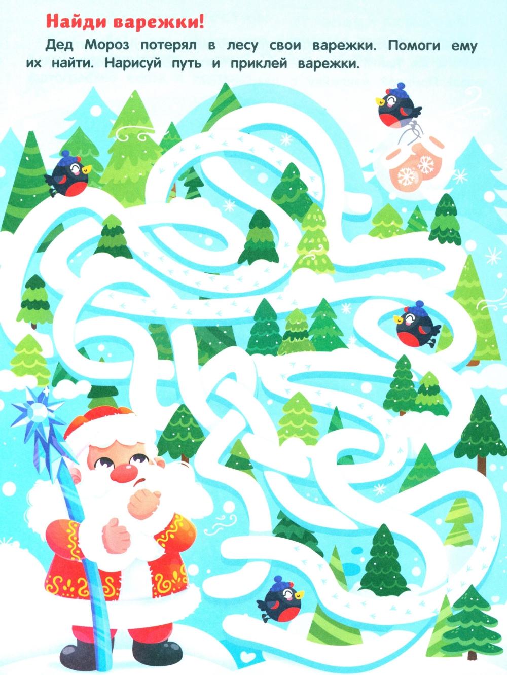 Новогодние приключения: книжка с наклейками (24 лабиринта)