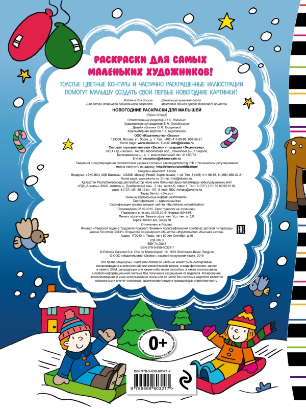 Раскраски для самых маленьких художников! Толстые цветные контуры и частично раскрашенные иллюстрации помогут малышу создать свои первые новогодние картинки!