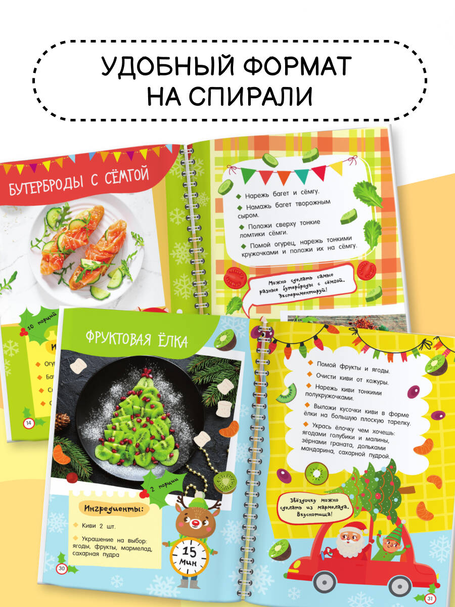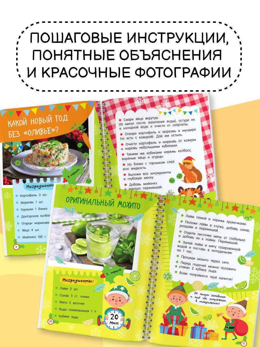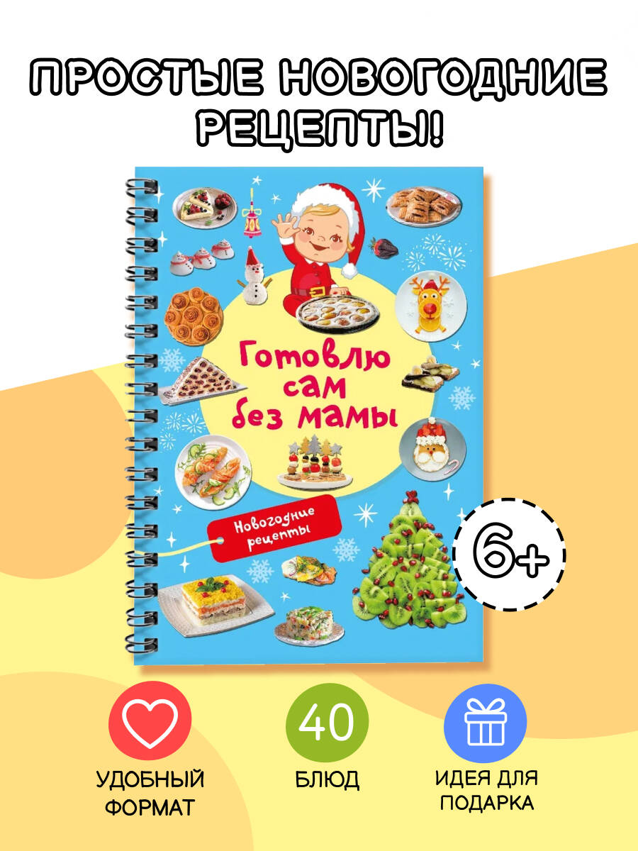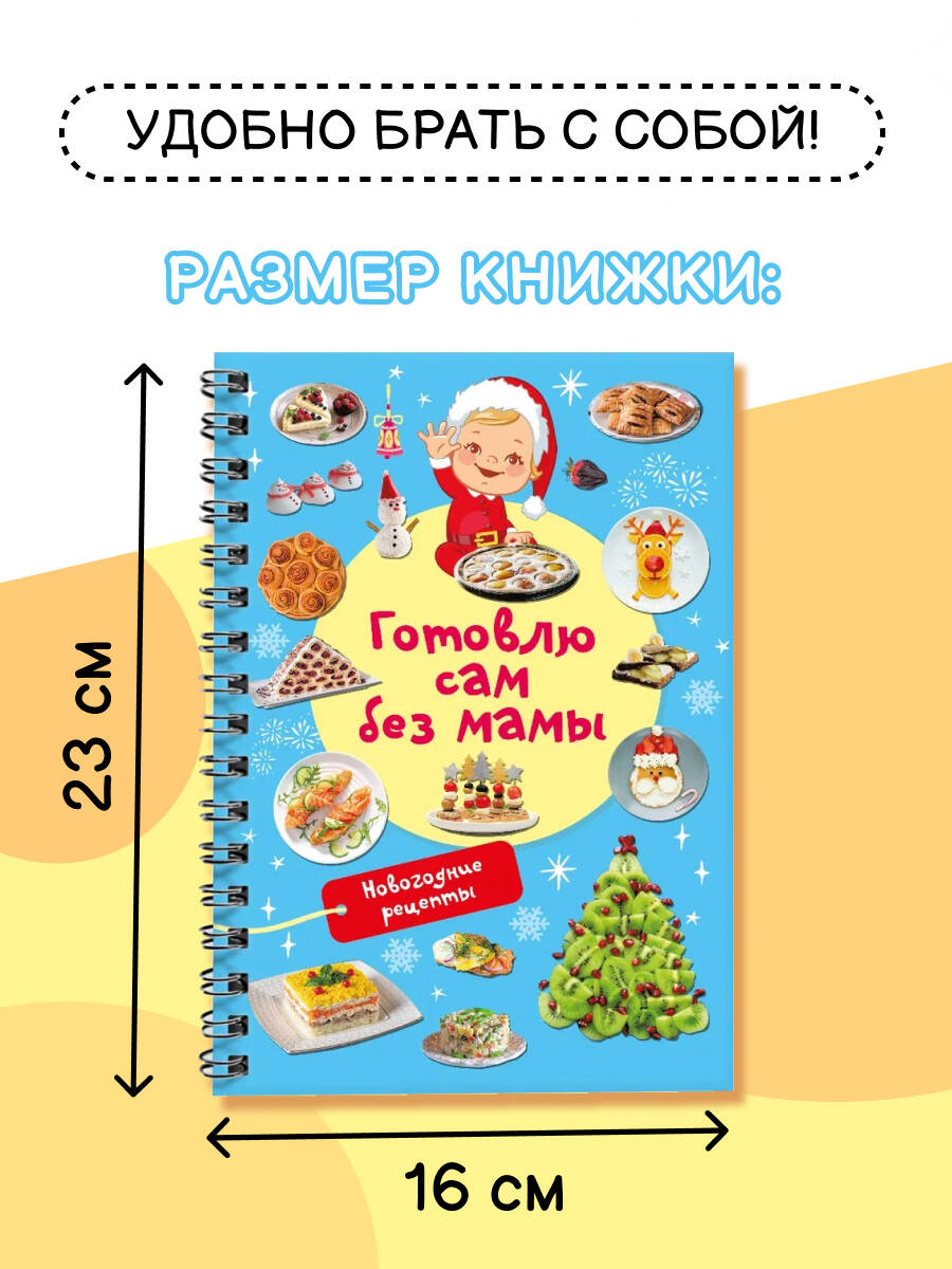 Обдумываете новогоднее меню? Мечтаете создать праздничное кулинарное волшебство? Помогут наша книга и… ваш ребёнок! Малыш сможет самостоятельно приготовить традиционный салат «Оливье», канапе-ёлочку из огурца, мандаринового снеговика, пингвинчика из маслин и моцареллы, а также много-много других новогодних блюд. Книга «Новогодние рецепты: готовлю сам без мамы» очень удобна в использовании - благодаря спирали страницы легко перекидываются из стороны в сторону, открываясь на 360 градусов. Книга отлично подойдёт в подарок и девочке, и мальчику. Каждый ребёнок освоит приготовление новогодних кулинарных шедевров с помощью пошаговых инструкций-рисунков, доступных объяснений и красочных фотографий готовых блюд. Начните вместе - и скоро вы увидите, как легко и с удовольствием ваш малыш готовит сам. Закажите книгу прямо сейчас - подарите своему ребёнку незабываемый Новый год!| Издательство | Издательство "АСТ" |