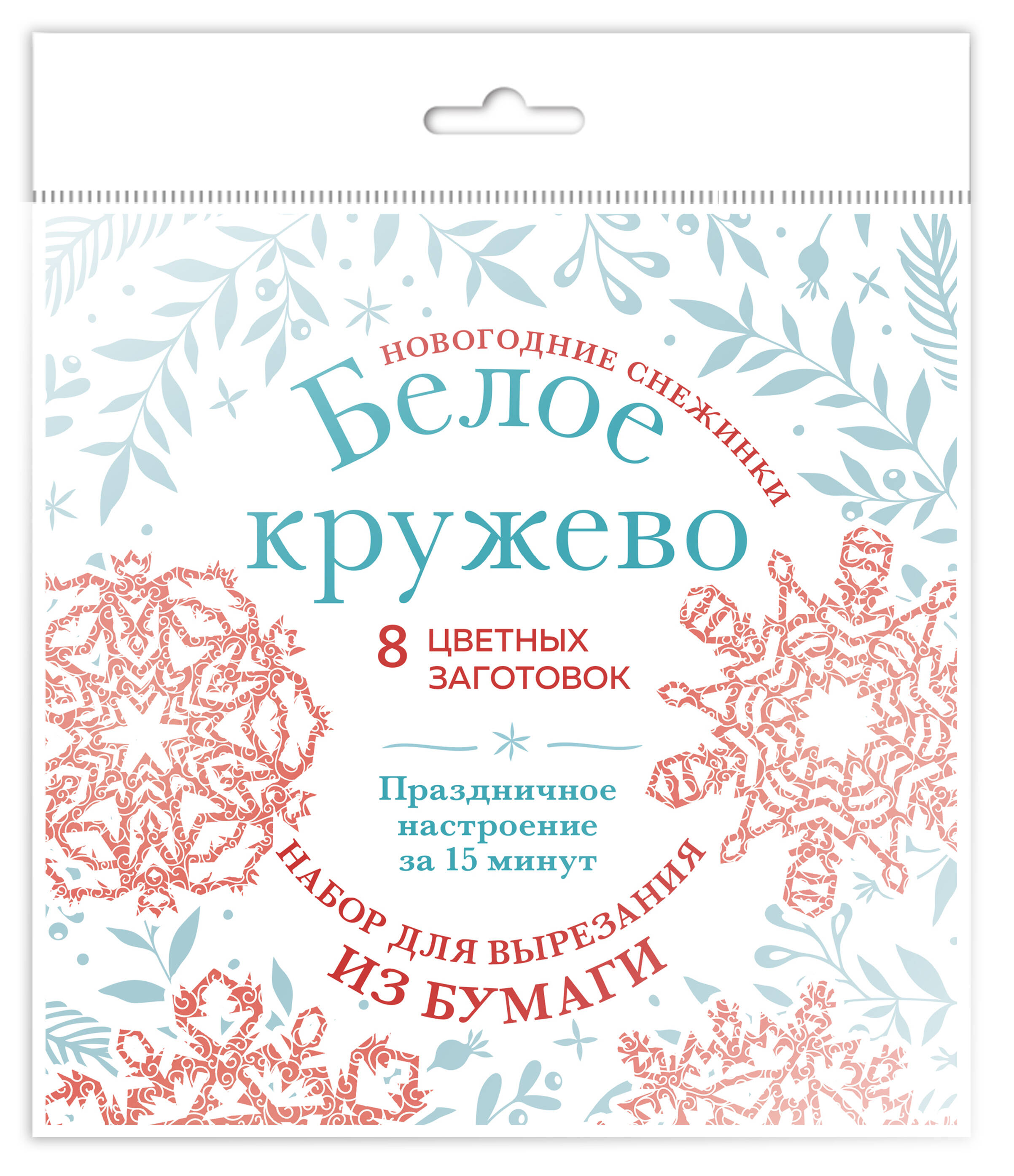 Новогодние снежинки «Белое кружево» (200х200 мм, набор для вырезания из бумаги, 16 стр., в европодвесе)