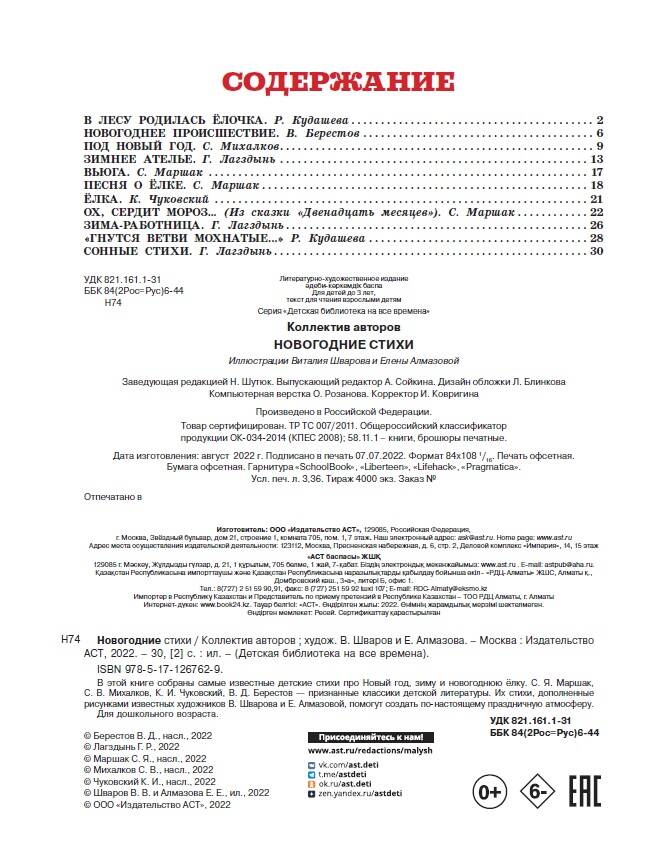В серию «Детская библиотека на все времена» мы включили только лучшие, самые известные и любимые произведения классиков деткой литературы. Герои Маршака, Успенского, Остера оживают благодаря красочным иллюстрациям известных художников, рассказывают маленьким читателям о своих приключениях, учат их быть добрыми, смелыми и находчивыми. Серия «Детская библиотека на все времена» - это: · Произведения С. Маршака, С. Козлова, Г. Остера, Э. Успенского, В. Сутеева, которые по праву считаются классикой российской детской литературы; · Добрые и поучительные истории, которые научат ребенка дружить, сопереживать и любить окружающий его мир; · Красочные и яркие разворотные иллюстрации известных художников - И. Якимовой и И. Зуева, К. Павловой, Т. Черкасовой; · Качественная печать на мелованной бумаге, крупный, удобный для чтения шрифт, большой формат делают серию идеальным вариантом для знакомства ребенка с классикой детской литературы.| Издательство | ИЗДАТЕЛЬСТВО "АСТ" |