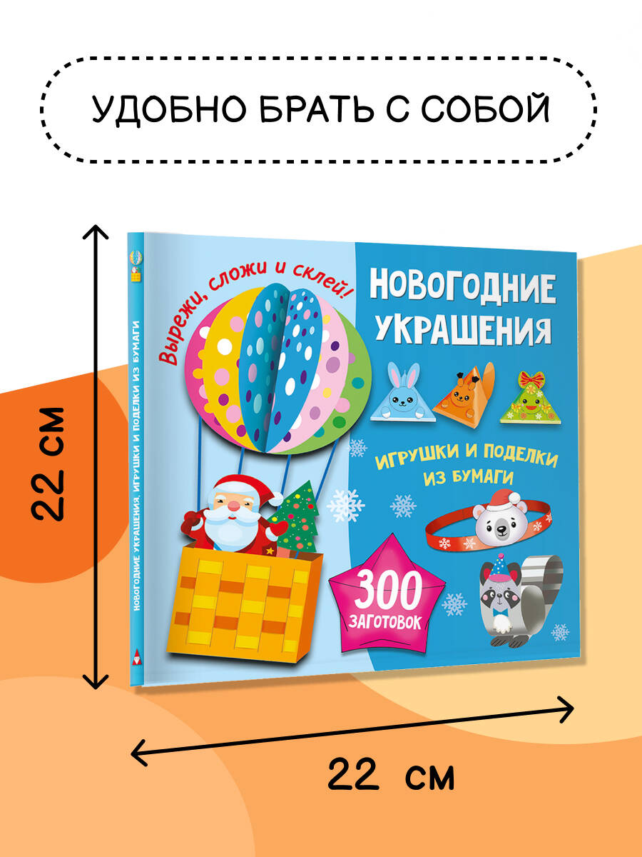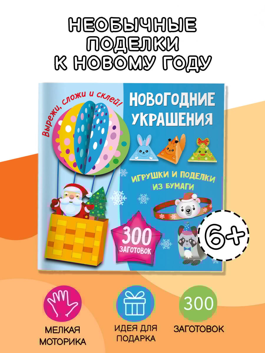 Среди всех книг по творчеству для детей выберите эту креативную книгу-праздник издательства «Малыш». «Новогодние украшения, игрушки и поделки из бумаги. 300 заготовок. Вырежи, сложи и склей» - это множество идей для создания красивых и оригинальных поделок, которые станут прекрасным подарком к самому любимому зимнему празднику: новогодняя елочка, лошадка - символ года, оригами, карнавальные маски, колпачки и ободки, новогодние бирки, игрушки, коробочки для сладостей, гирлянды, забавные картинки для фотосессии, милые открытки для родных и близких! Весёлые мастер-классы с детьми - это эффективный метод развития мышления и мелкой моторики малыша и невероятно душевное время, проведенное вместе. Издание для интересного досуга будет прекрасным подарком для мальчика или подарком для девочки. Вам больше не придется придумывать, как поздравить друзей или любимую бабушку - идеи для детского творчества уже ждут вас под красочной обложкой!| Издательство | Издательство "АСТ" |