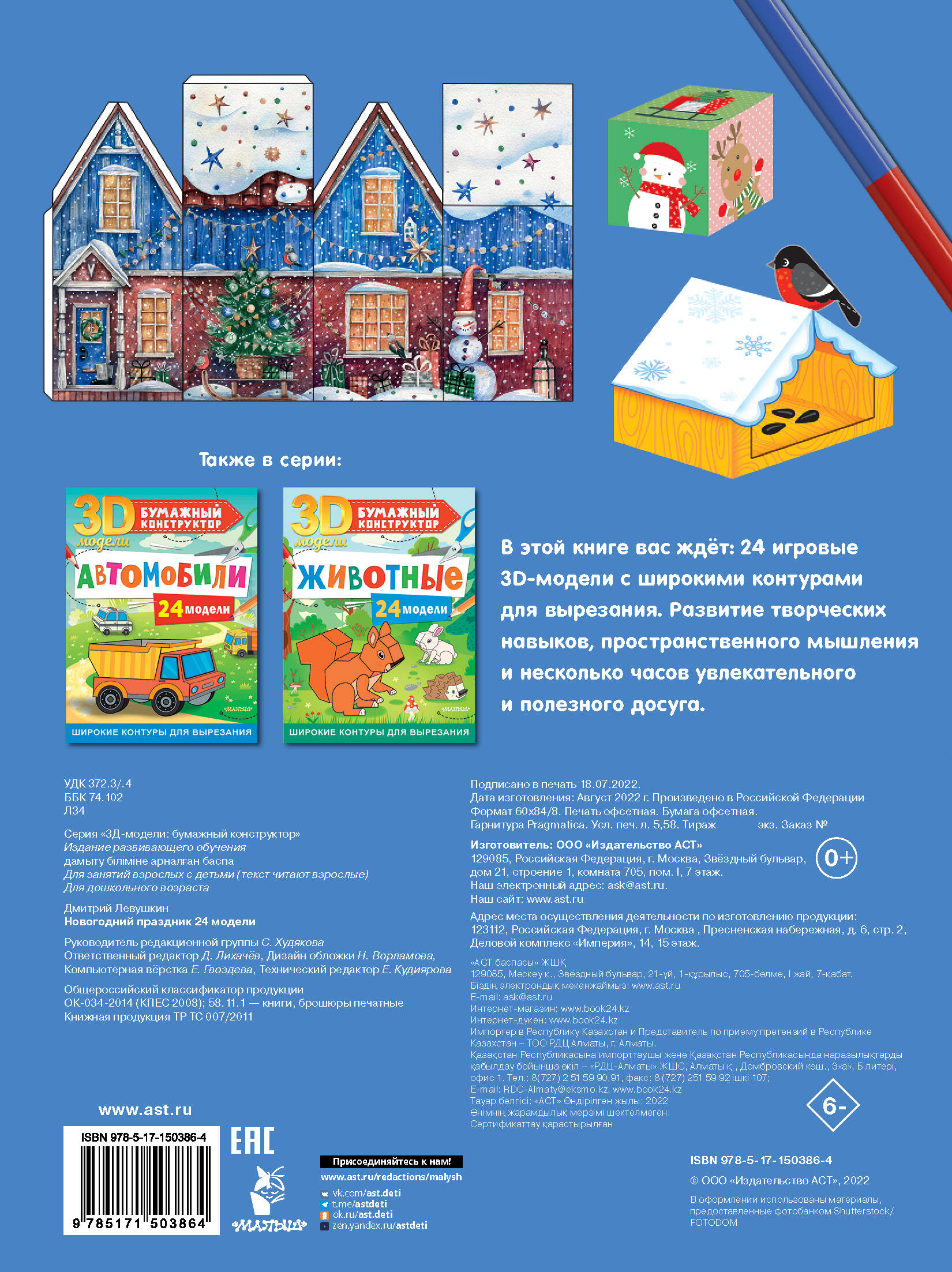 В этой книге вас ждёт: 24 игровые 3D - модели с широкими контурами для вырезания. Развитие творческих навыков, пространственного мышления и несколько часов увлекательного и полезного досуга.| Издательство | ИЗДАТЕЛЬСТВО "АСТ" |