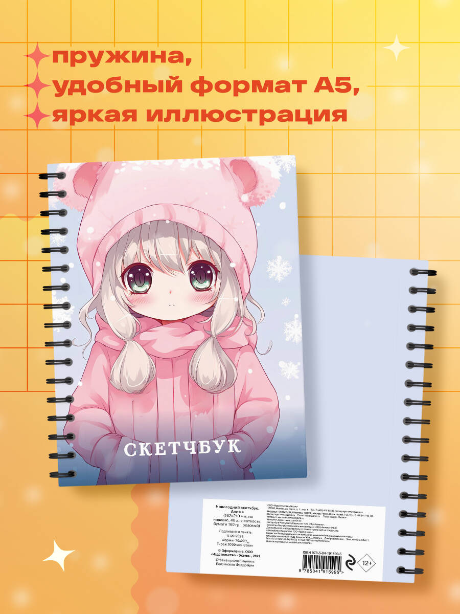 Аннотация: Новогодний скетчбук. Аниме (162х210 мм, на навивке, 40 л., плотность бумаги 160 гр., розовый)
