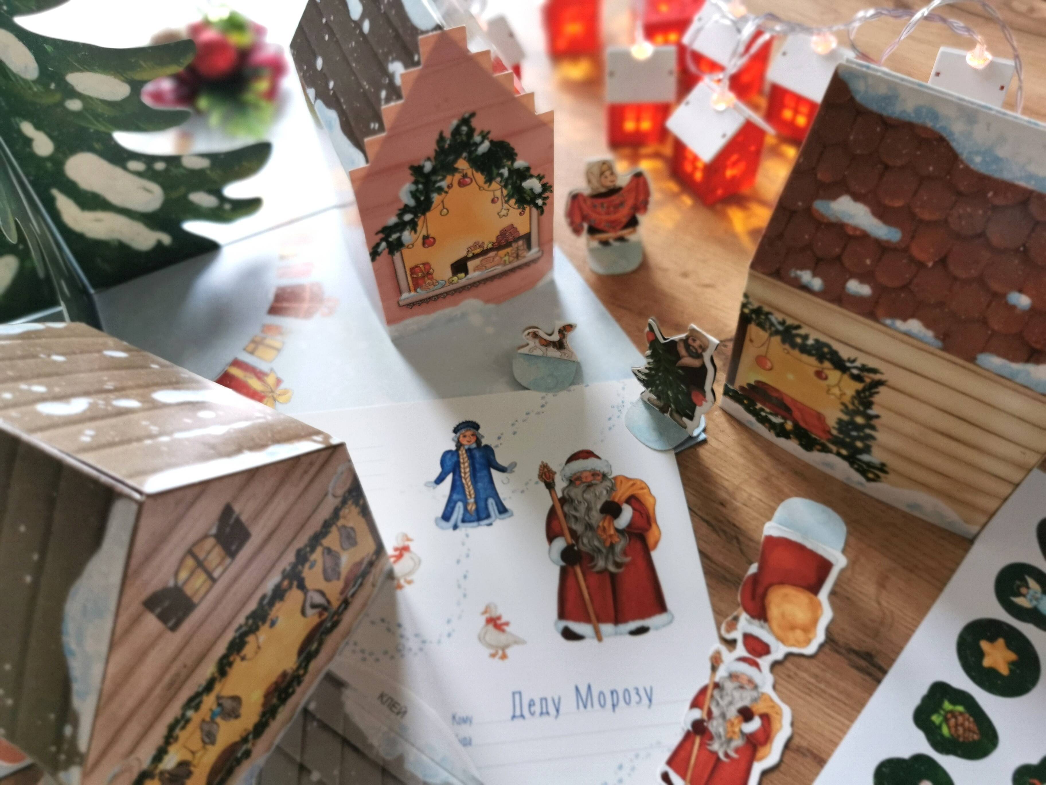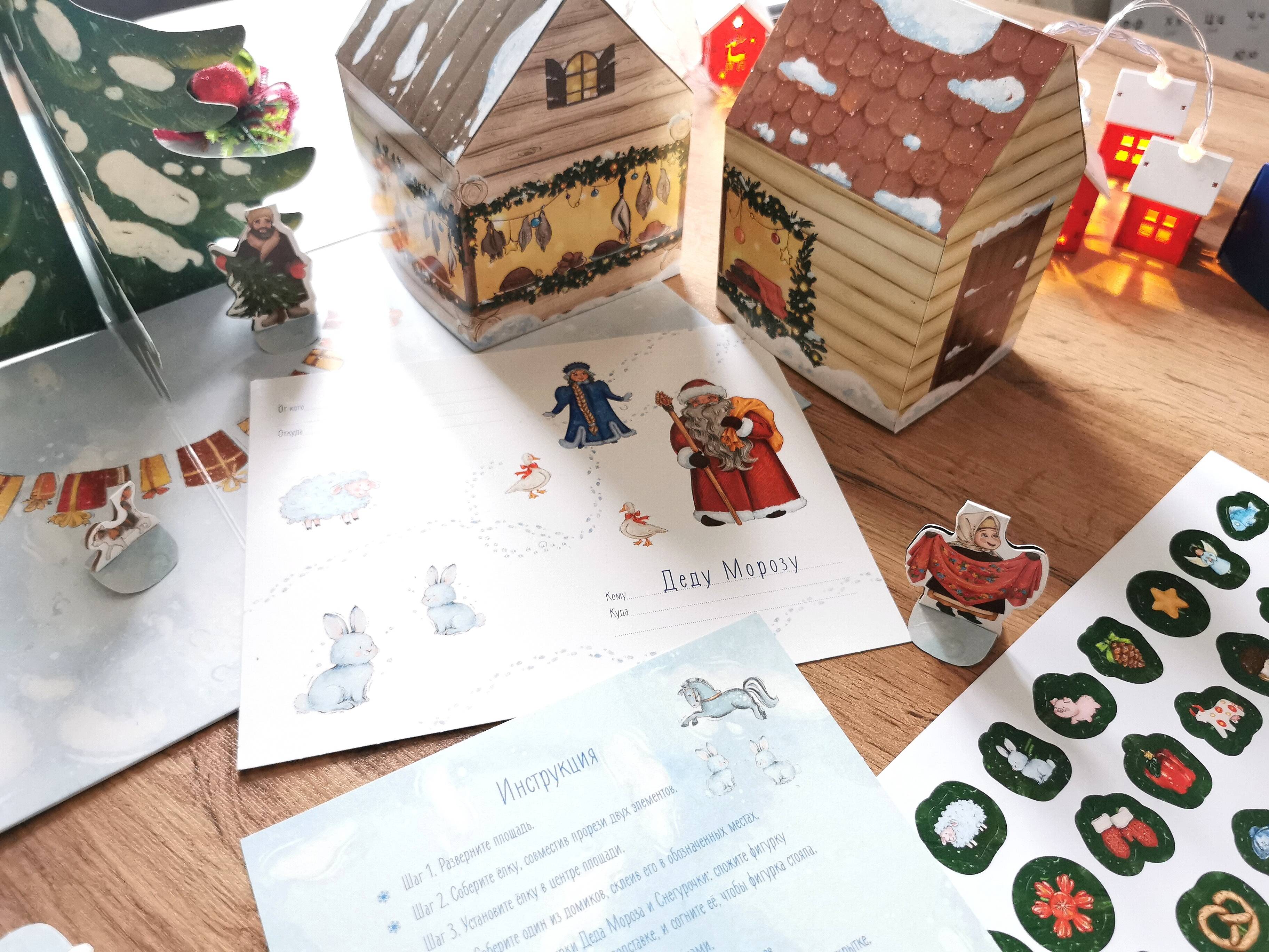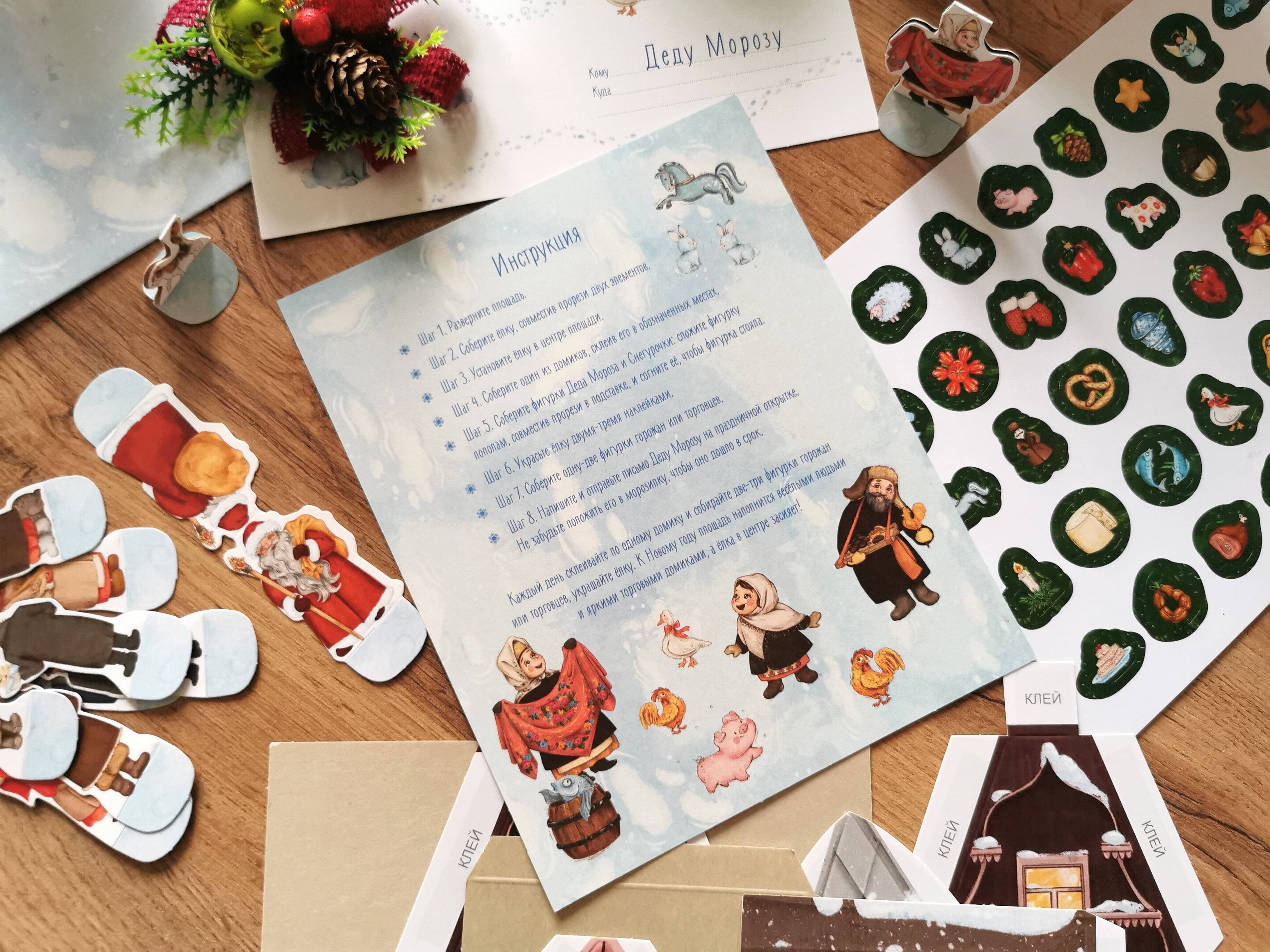 В декабре по всей нашей стране открываются новогодние ярмарки. Сияет праздничная елка, в домиках-лотках торговцы продают русские игрушки, сладости и сувениры. Над площадью пахнет хвоей и корицей. Горожане гуляют, пробуют горячий чай и пряники, выбирают подарки для близких. Создайте атмосферу праздника с помощью этого адвента! В волшебной коробке - площадь с елкой, торговцы и домики, горожане, которые прогуливаются по заснеженным улочкам, Снегурочка и Дед Мороз. Все это вы соберете своими руками. А еще узнаете, из какой русской губернии привезены товары и почему именно они. Внутри есть инструкция, которая расскажет, как правильно разложить ярмарочное поле, установить елку и склеить домики. Все элементы вырезаны, ребенку остается только собрать их и расставить. А затем - украсить центр стола или книжную полку. Добавьте щепотку фантазии и оживите ярмарочную площадь - всей семьей разыгрывайте сценки, придумывайте задания и загадывайте желания. Пусть они непременно сбудутся! В комплекте: 14 объемных домиков с товарами 14 фигурок торговцев 6 фигурок горожан фигурки Деда Мороза и Снегурочки раскладная ярмарочная площадь объемная елка наклейки с игрушками для елки открытка-письмо Деду Морозу Фишки адвента: - Поможет создать предновогоднее настроение. - Повод собрать семью за увлекательным занятием. - Новогоднее украшение для дома. - Все необходимое для праздника - в одной волшебной коробке! Для кого этот адвент: Для детей от 5 лет. Для всей семьи.