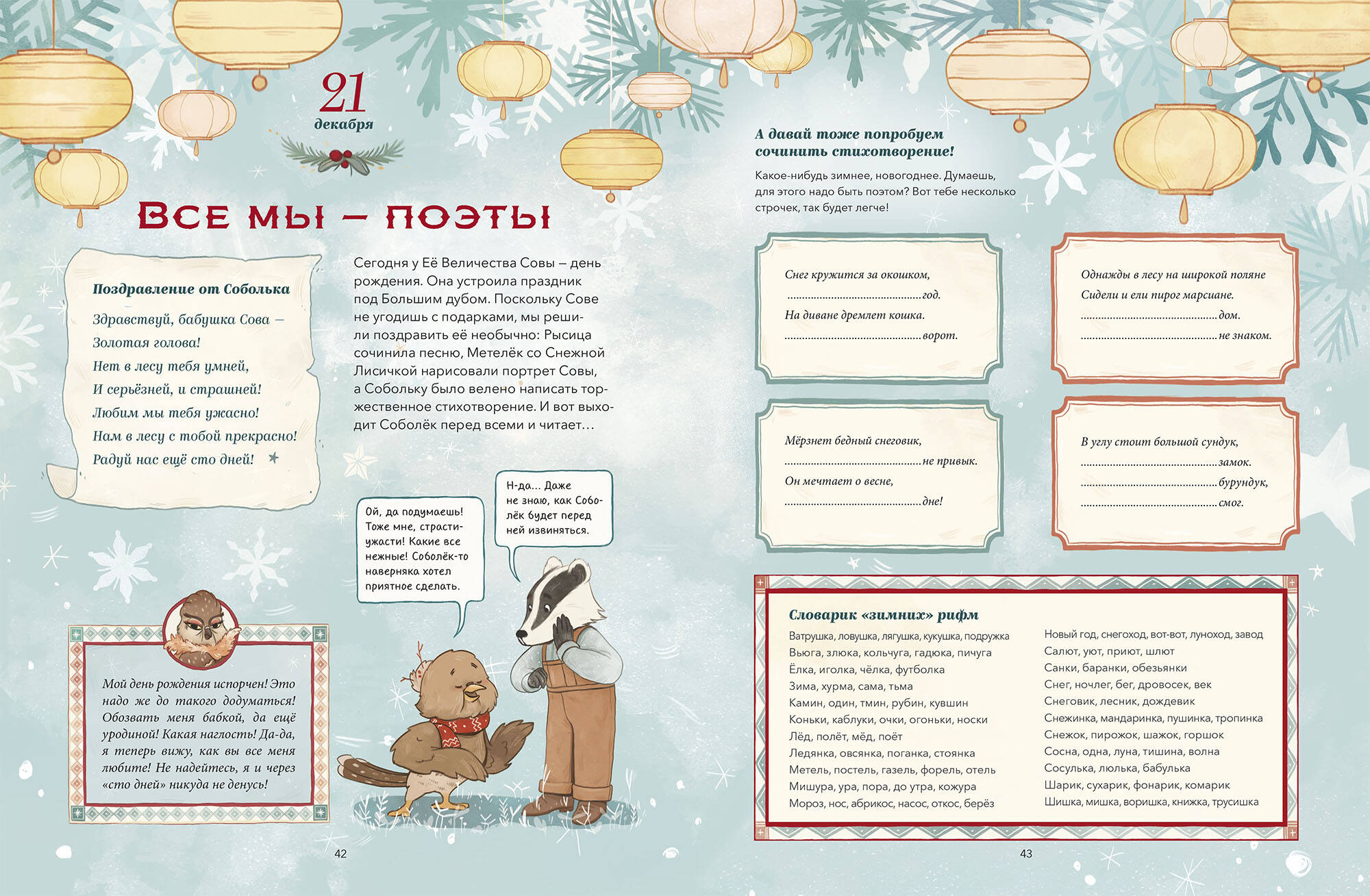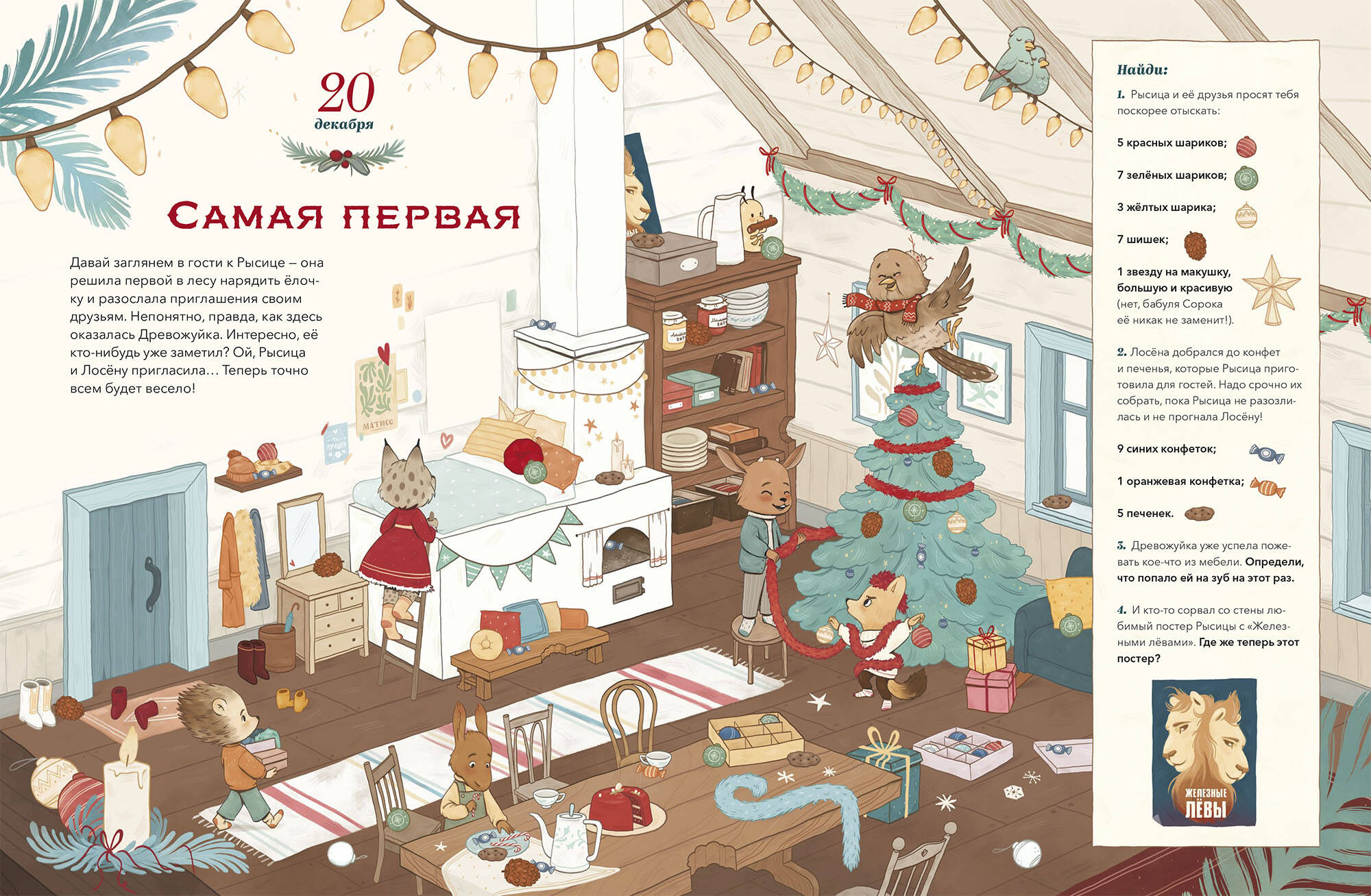 Яркая и увлекательная книга-адвент с заданиями, рецептами и поделками для всей семьи на каждый день декабря. Для многих Новый год - самый любимый праздник. А дети его просто обожают и заранее начинают ждать праздника. Но как трудно ждать! Ведь, когда ты маленький, время тянется долго-долго. На улицах уже елочки, огни и гирлянды, а до праздника еще так далеко! Чтобы ожидание Нового года само по себе стало праздничным и радостным, мы подготовили книгу-адвент. В ней рецепты, задания, игры и поделки на каждый день декабря, чтобы вы вместе с ребенком могли каждый вечер делать что-то увлекательное и вместе готовиться к Новому году. А если детей у вас двое, трое и даже больше, тем лучше - выполнять задания вместе еще веселее. Малышам предстоит совершить путешествие в волшебный лес и вместе с его обитателями - робкой Снежной Лисичкой, модницей-Рысицей, бабушкой Ууфой и другими - подготовиться к празднику. Например, самим изготовить ледяные украшения на елку, сделать теплого и доброго Снеговуха, принять участие в лесном чемпионате по хоккею и приготовить сладкие ручные ежики. Для кого книга: Для детей от 5 лет.| Издательство | МАНН, ИВАНОВ И ФЕРБЕР ООО |