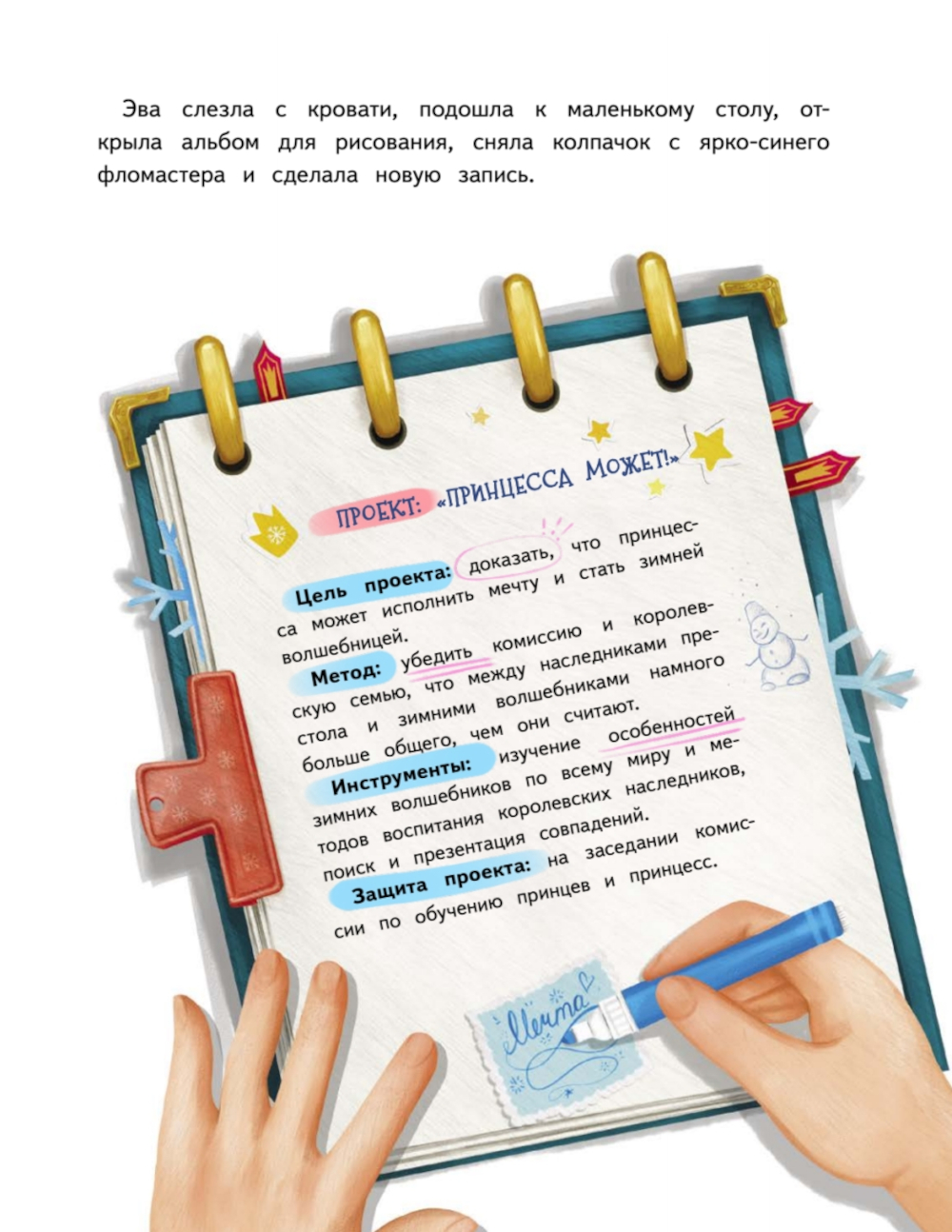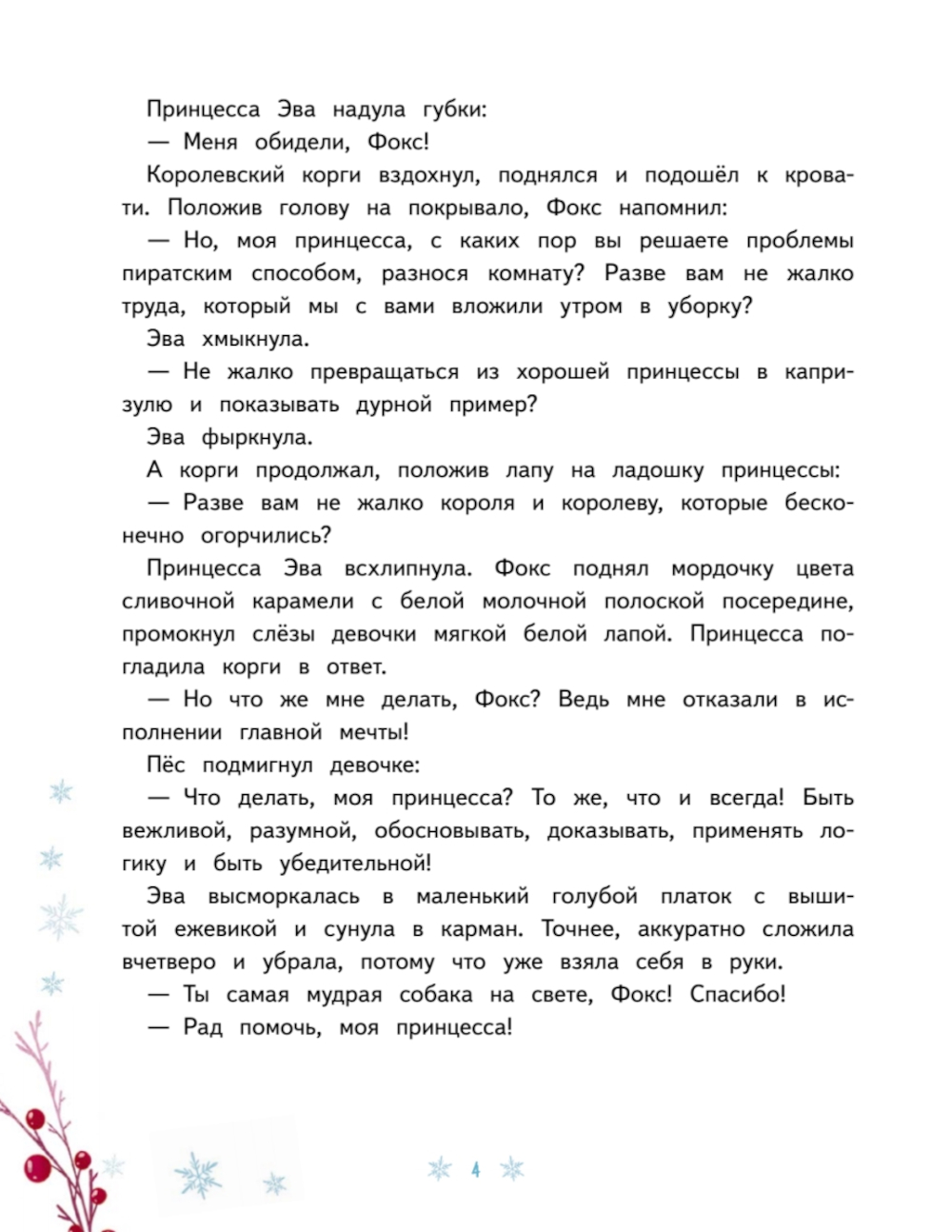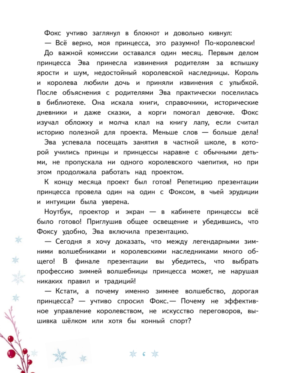Есть ли что-то общее у принцессы и Деда Мороза? Возможно, вам и в голову не приходило их сравнивать! Но вот у принцессы Эвы не только богатая фантазия, но и большая мечта - она хочет стать зимней волшебницей! А для этого ей нужно доказать родным и королевской комиссии, что из неё получится отличная Снегурочка. С помощью своего друга корги Фокса Эва узнает: - интересные факты про зимних персонажей из разных стран мира - Деда Мороза, Санта-Клауса, Святого Николая, японскую красавицу Юкки-онна, кельтскую старуху Калех и других; - о воспитании королевских наследников, их обязанностях и особенностях дворцового этикета; - о том, что в сказочных и реальных историях одинаково важны семейная поддержка, друзья, трудолюбие и любовь к своему делу! Пусть все ваши мечты исполняются!| Издательство | Питер |