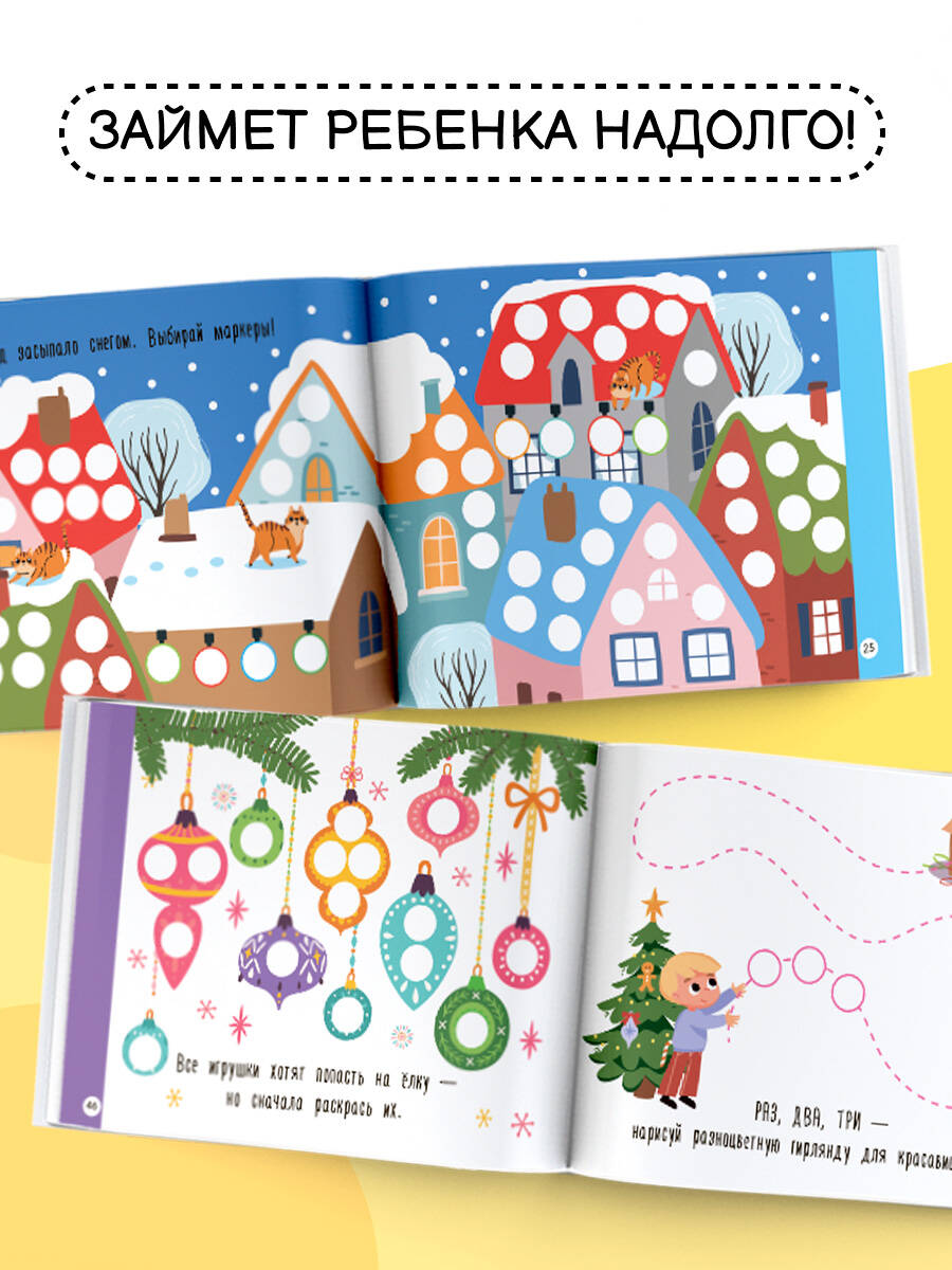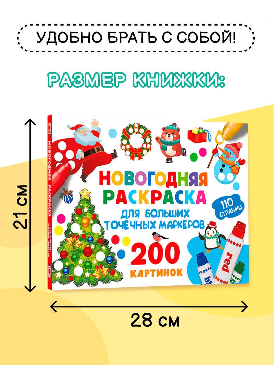 Аннотация: Новогодняя раскраска для больших точечных маркеров. 200 картинок