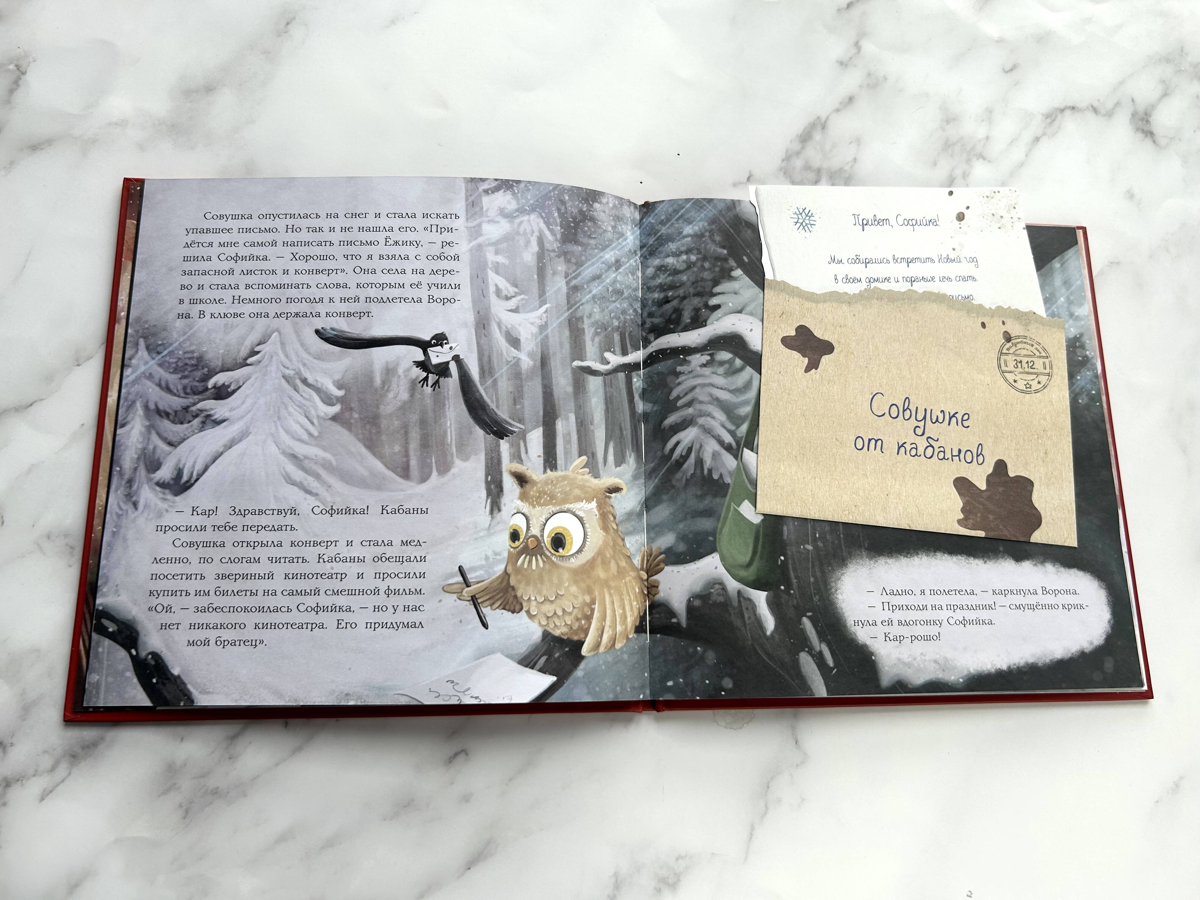 Наступает Новый год. Жители Волшебного леса так долго его ждали! Сова Софийка и её братик Филька решили устроить ужин и пригласить в гости всех своих друзей. А чтобы их порадовать, Филька написал каждому письмо и пообещал такие подарки, достать которые поможет только волшебство... Хочешь узнать, что ответили зверята? Тогда скорее открывай книгу! В ней ты найдёшь красивые конверты с настоящими письмами, которые можно достать и прочитать. А ещё ты узнаешь, какой подарок получили малыши от Деда Мороза.| Издательство | ООО "Издательство "Эксмо" |