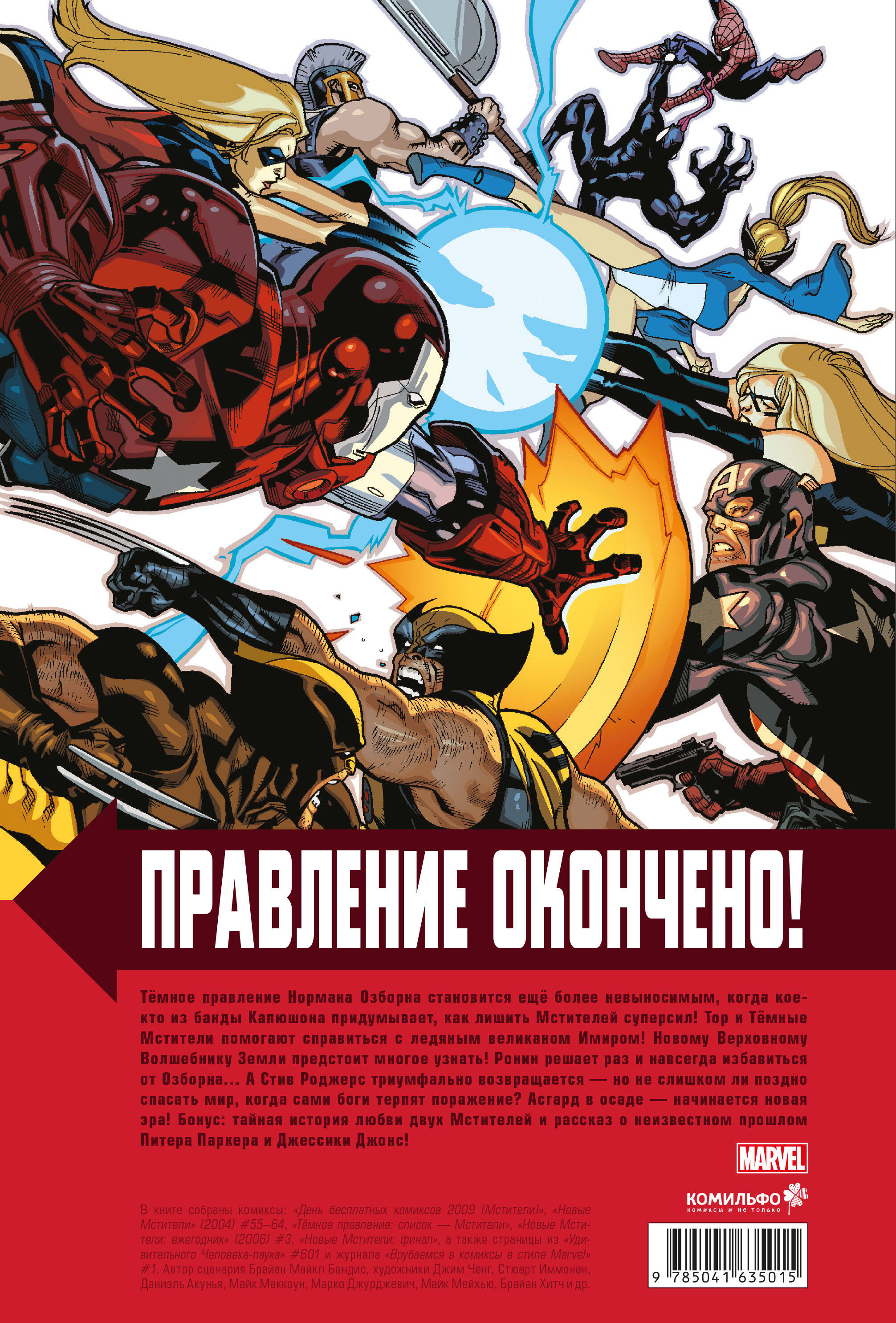 Правление окончено! Тёмное правление Нормана Озборна становится ещё более невыносимым, когда кое-кто из банды Капюшона придумывает, как лишить Мстителей суперсил! Тор и Тёмные Мстители помогают справиться с ледяным великаном Имиром! Новому Верховному Волшебнику Земли предстоит многое узнать! Ронин решает раз и навсегда избавиться от Озборна… А Стив Роджерс триумфально возвращается - но не слишком ли поздно спасать мир, когда сами боги терпят поражение? Асгард в осаде - начинается новая эра! Бонус: тайная история любви двух Мстителей и рассказ о неизвестном прошлом Питера Паркера и Джессики Джонс! В книге собраны комиксы: «День бесплатных комиксов 2009 (Мстители)», «Новые Мстители» (2004) #55-64, «Тёмное правление: список - Мстители», «Новые Мстители: ежегодник» (2006) #3, «Новые Мстители: финал», а также страницы из «Удивительного Человека-паука» #601 и журнала «Врубаемся в комиксы в стиле Marvel» #1. Автор сценария Брайан Майкл Бендис, художники Джим Ченг, Стюарт Иммонен, Даниэль Акунья, Майк Маккоун, Марко Джурджевич, Майк Мейхью, Брайан Хитч и др.| Издательство | ООО "Издательство "Эксмо" |