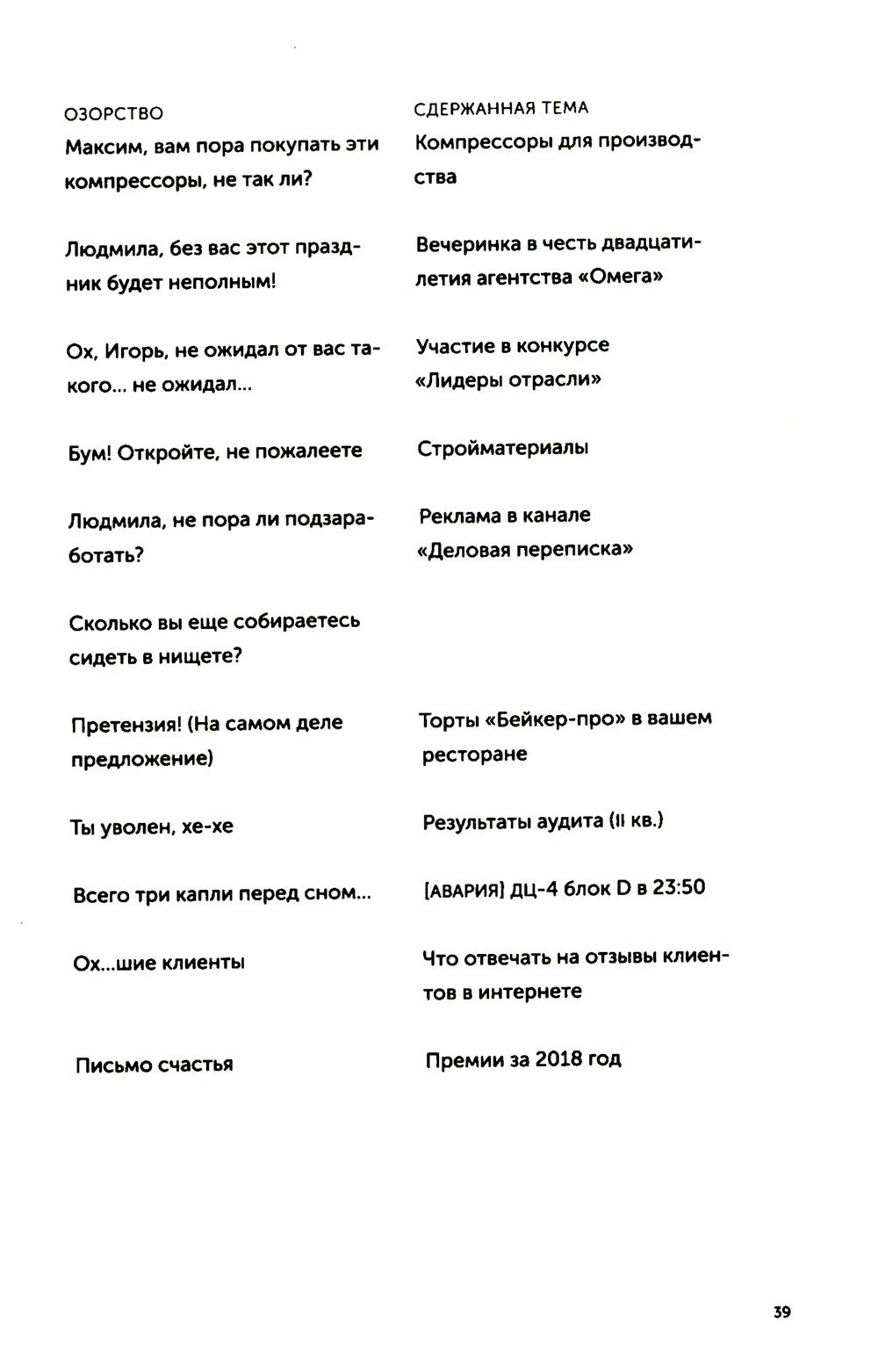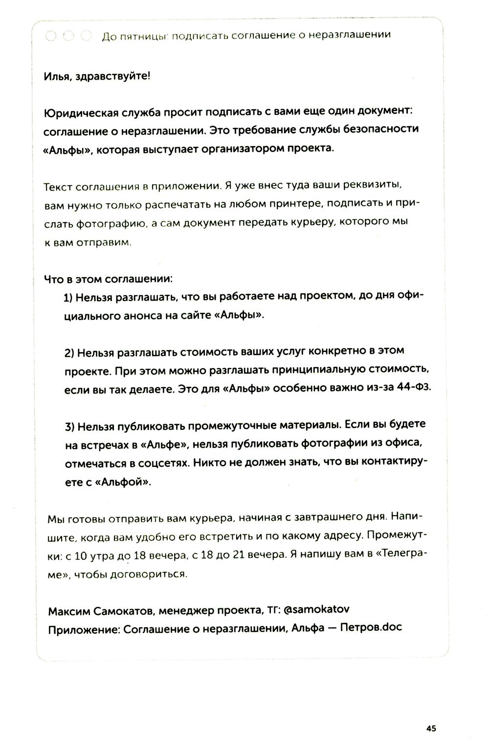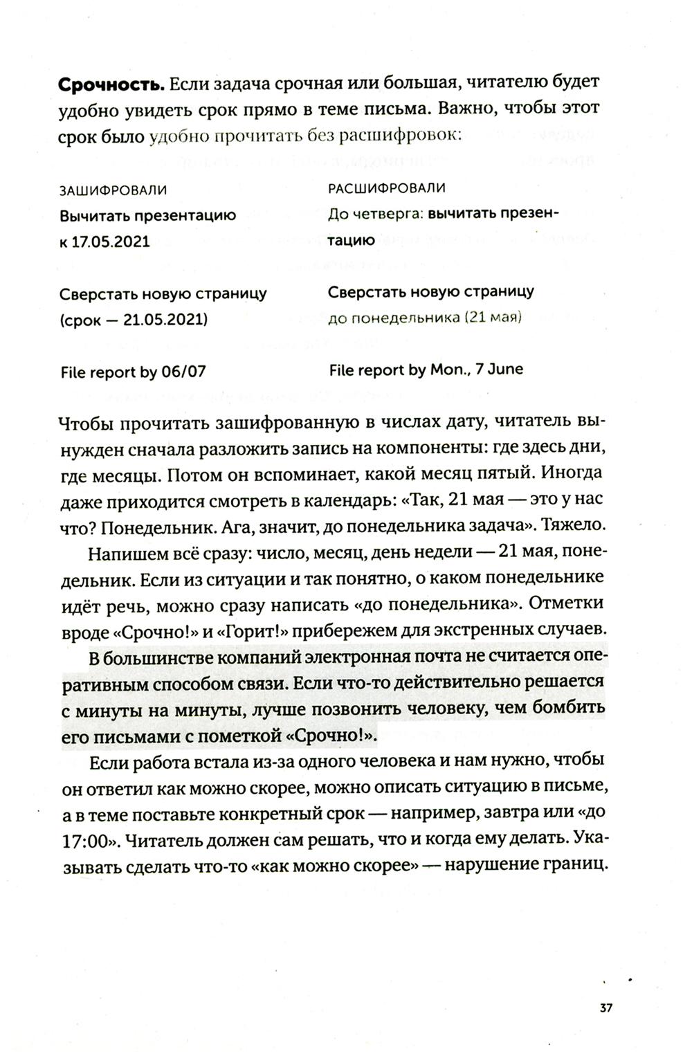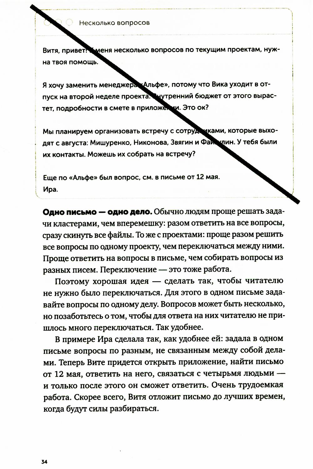 Последние двадцать лет нас учили, что деловая переписка - это бесконечные реверансы, бессмысленные формы вежливости и вымученные шаблоны: «Коллеги, я вас услышал», «Клиент прислал правочки, внесите АСАП. Заранее спасибо», «С уважением к вам и вашему бизнесу». Современное деловое письмо - это махровая фальшь, копеечные манипуляции и плохо скрываемое обоюдное презрение. Максим Ильяхов и Людмила Сарычева, авторы культовой книги «Пиши, сокращай», предлагают менять культуру делового письма и выдвигают два новых правила: уважение к адресату и забота о его интересах. Письма, составленные по таким правилам, располагают к вам людей и помогают находить общий язык. Следуя рекомендациям из книги, вы научитесь писать коммерческие предложения, сопроводительные письма, просьбы коллегам, ответы клиентам и любые другие рабочие письма. Это обязательная книга для всех, кто пишет по работе: руководителей, менеджеров, специалистов и соискателей.| Издательство | Альпина Паблишер |