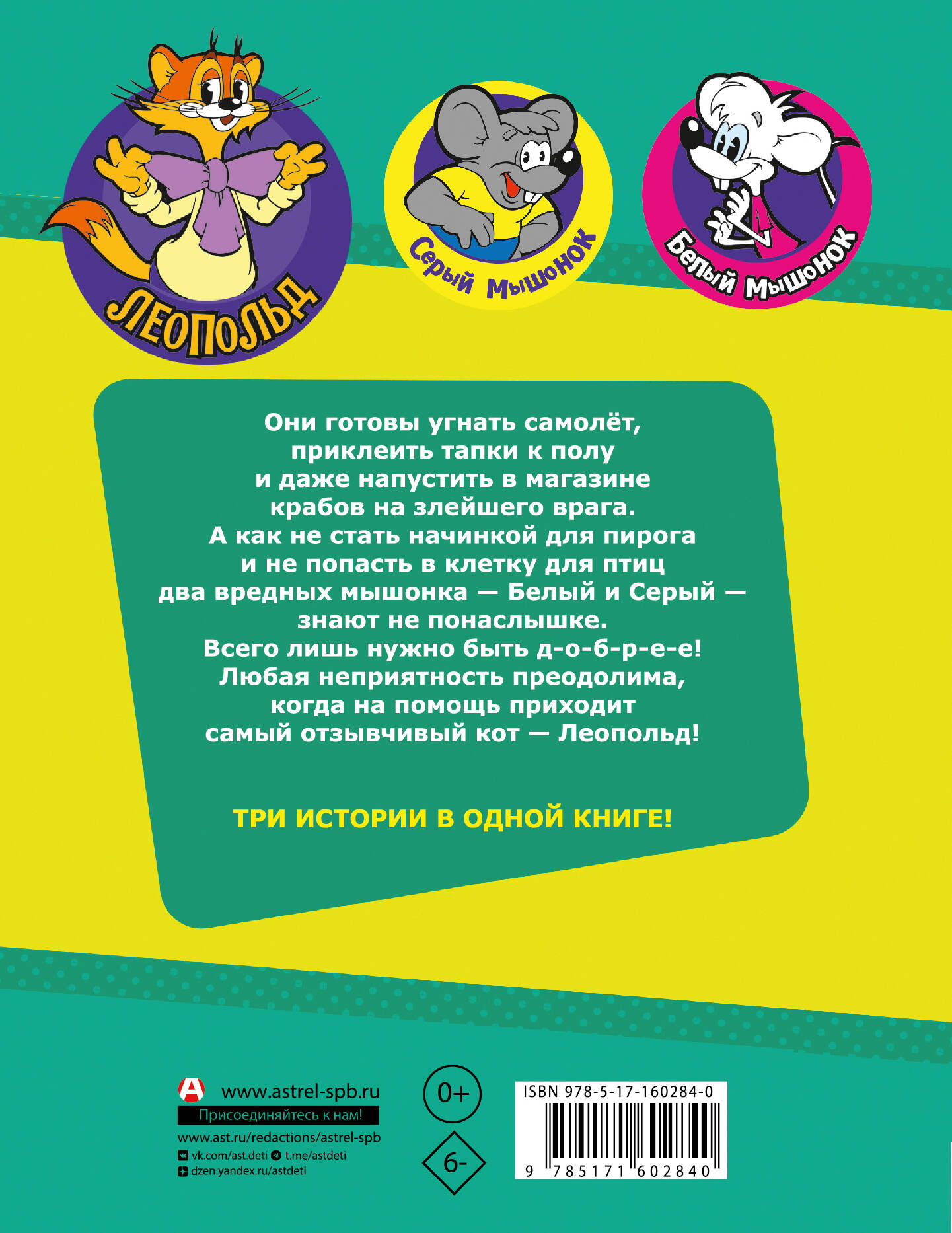 Они готовы угнать самолёт, приклеить тапки к полу и даже напустить в магазине крабов на злейшего врага. А как не стать начинкой для пирога и не попасть в клетку для птиц два вредных мышонка - Белый и Серый - знают не понаслышке. Всего лишь нужно быть д-о-б-р-е-е! Любая неприятность преодолима, когда на помощь приходит самый отзывчивый кот - Леопольд!| Издательство | Издательство "АСТ" |