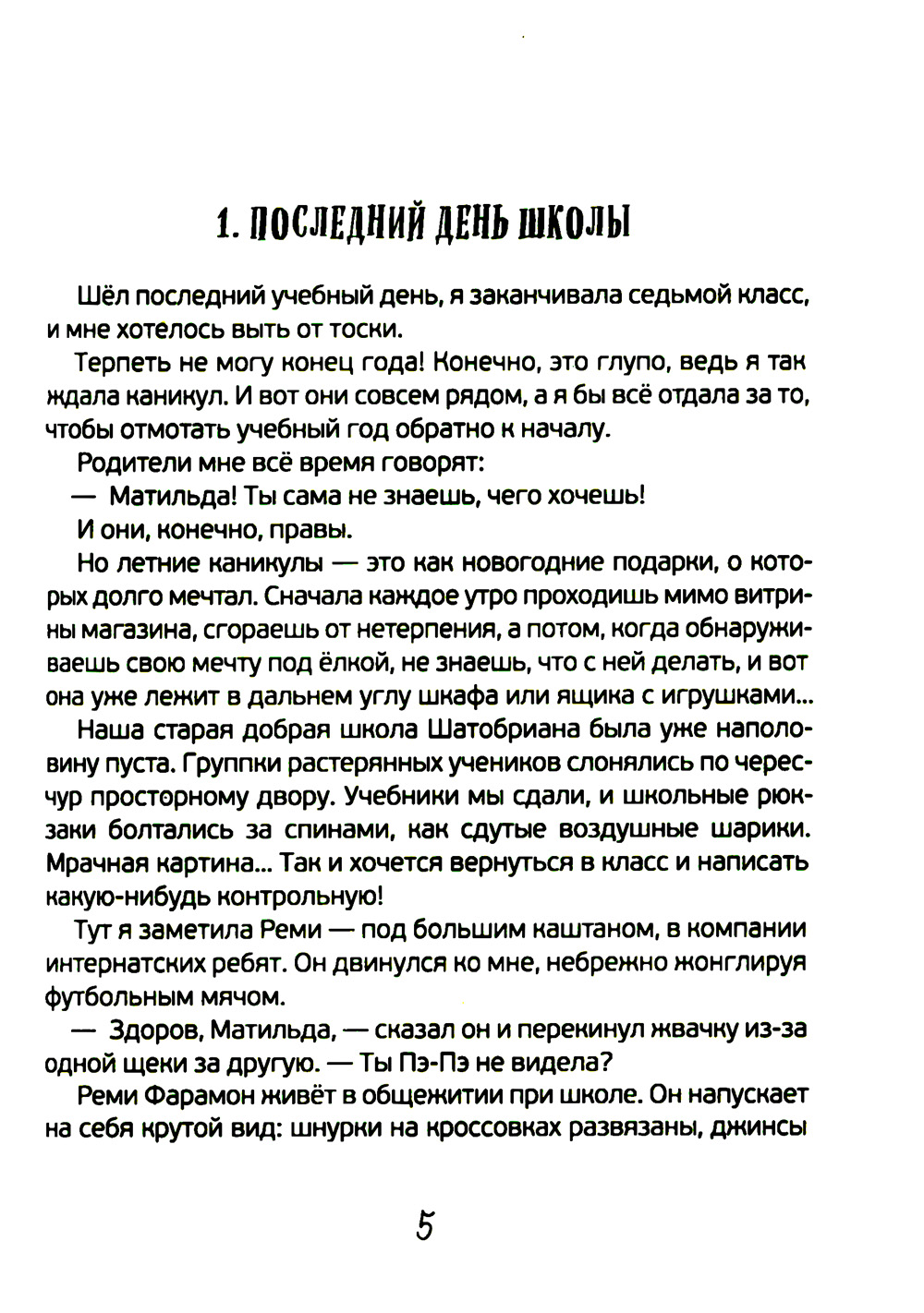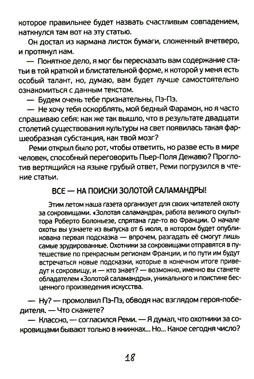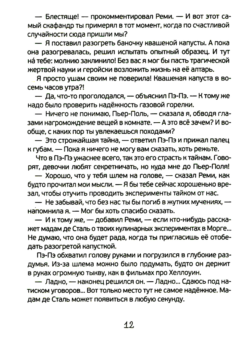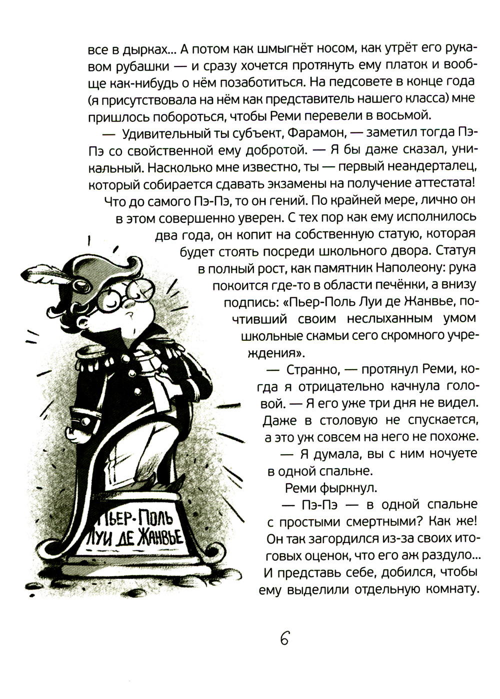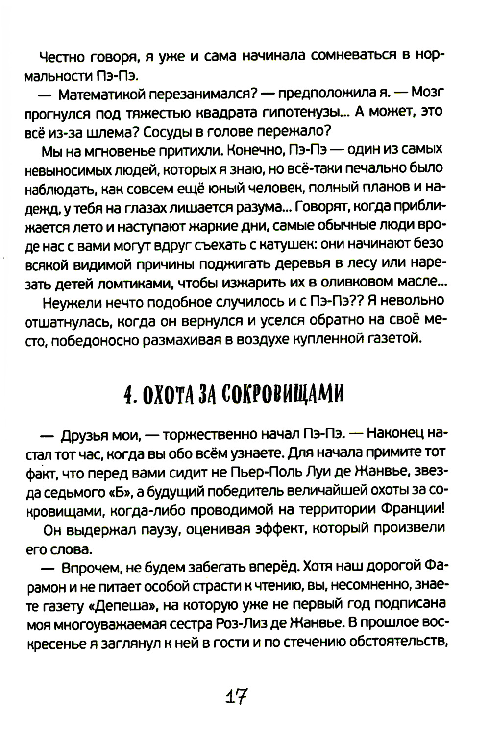 Трое французских школьников снова в деле! Похождения неугомонной троицы, начавшиеся в книге «Расследования в школе», продолжаются. По окончании 7-го класса Пьер-Поль Дежавю, интеллектуал и любитель поесть, уговаривает своих друзей - стеснительного, но решительного второгодника Реми Фарамона и умницу Матильду Блондан - принять участие в новых авантюрах. Поэтому они втроём отправляются на поиски таинственной статуэтки в замках Луары, а затем едут в шотландский замок, чтобы помочь исследователю, который специализируется на экзотических существах, и заодно спасти детёныша тиранодона от незавидной судьбы. А в финальной истории Реми и Матильду подстерегают опасности, пока они выполняют обязанности телохранителей Пьер-Поля на конкурсе изобретений... Найдут ли они загадочную статуэтку? Какие тайны скрывают стены шотландского замка Кийс? И какой экстраординарный объект изобрёл гениальный Пьер-Поль для конкурса? Новая книга Жана-Филиппа Арру-Виньо, известного по серии «Приключения семейки из Шербура» и детскому фэнтези «Магнус Миллион и спальня кошмаров», выходивших в «КомпасГиде», увлекает динамичностью повествования, забавными ситуациями, яркими персонажами и прекрасным чувством юмора. Переводчик Ира Филиппова сумела превосходно передать интонации героев и шутки автора, а иллюстратор Катя Варжунтович чудесно отобразила особенности каждого персонажа.| Издательство | ИД КомпасГид |