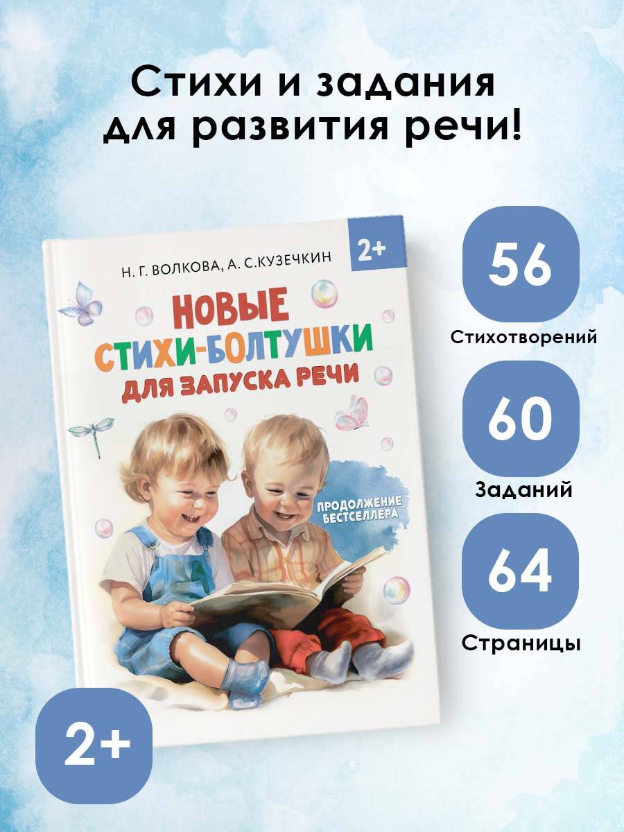 Продолжение бестселлера по запуску речи у малышей. Книга с новыми уникальными стихами и логопедическими заданиями. Это издание поможет ребёнку начать произносить первые слова и разговориться. Это не просто книга стихов для малышей - это пособие по развитию речи для самых маленьких. Стихи в этой книжке особенные - логопедические, игровые. Каждый стишок стимулирует речевую активность малыша и помогает прорабатывать звуки.
