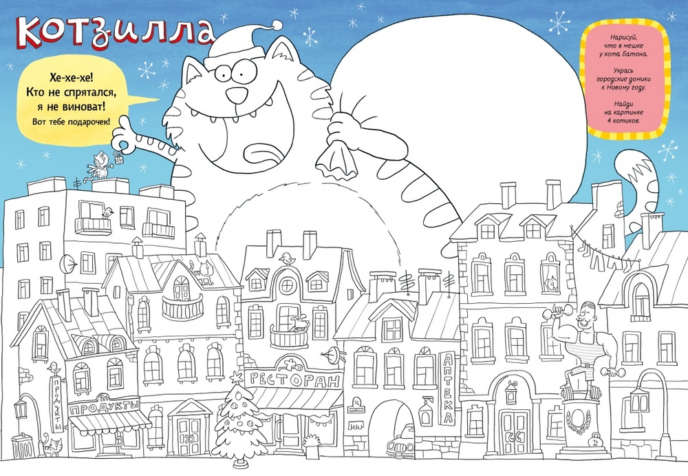 Наступает Новый год - а это значит, что нужно успеть подготовиться к его встрече: найти и нарядить ёлку, отыскать второй валенок, поздравить всех птичек и даже... подарить подарок самому Деду Морозу! Скорее бери карандаши и вооружайся фантазией: коту Батону без тебя никак не справиться!